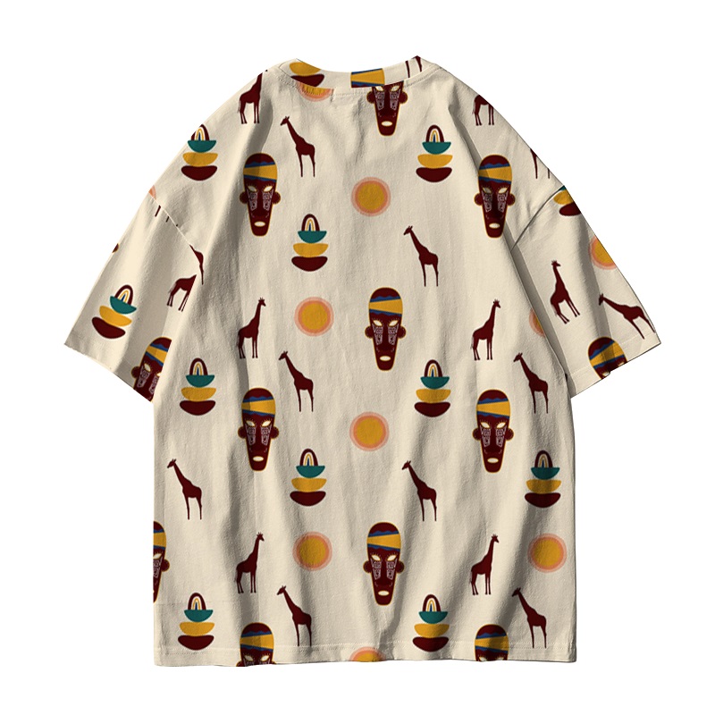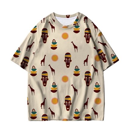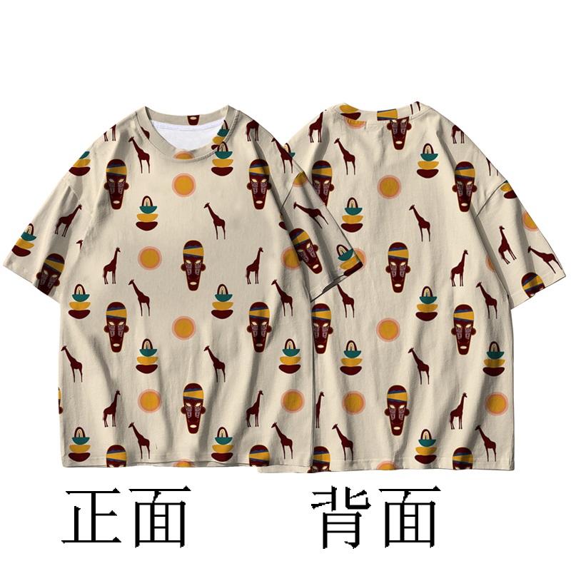 2025夏季新款潮牌复古短袖t恤男女同款情侣装宽松百搭半袖全彩T恤