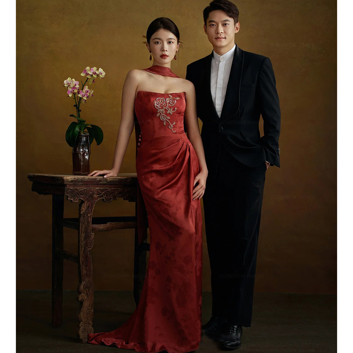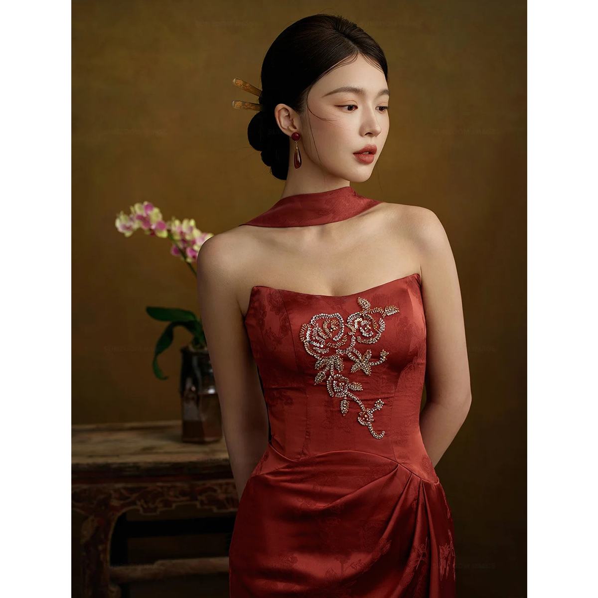 拖地轻婚纱新娘敬酒服婚礼抹胸婚宴晚礼服拖尾高贵宴会长款出阁服