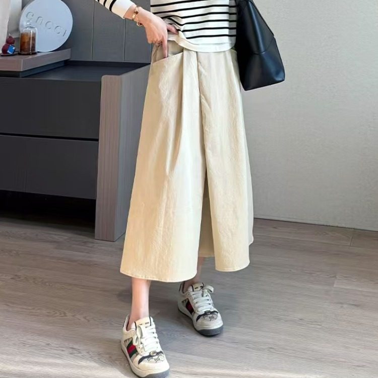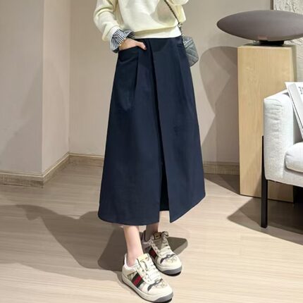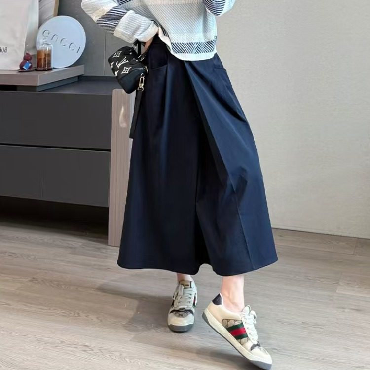 夏季2025新款胖mm宽松纯色压褶半身裙女高腰a字裙遮肉显瘦中长裙
