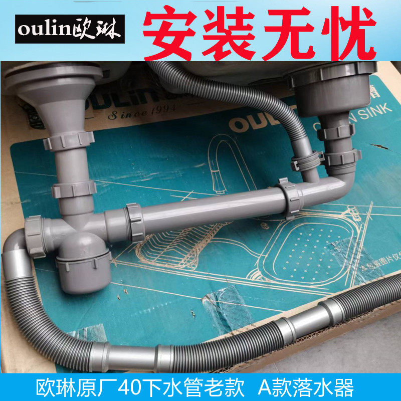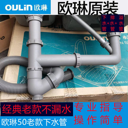 欧琳水槽下水管配件厨房不锈钢双槽软管溢水管防臭40密封圈50胶圈