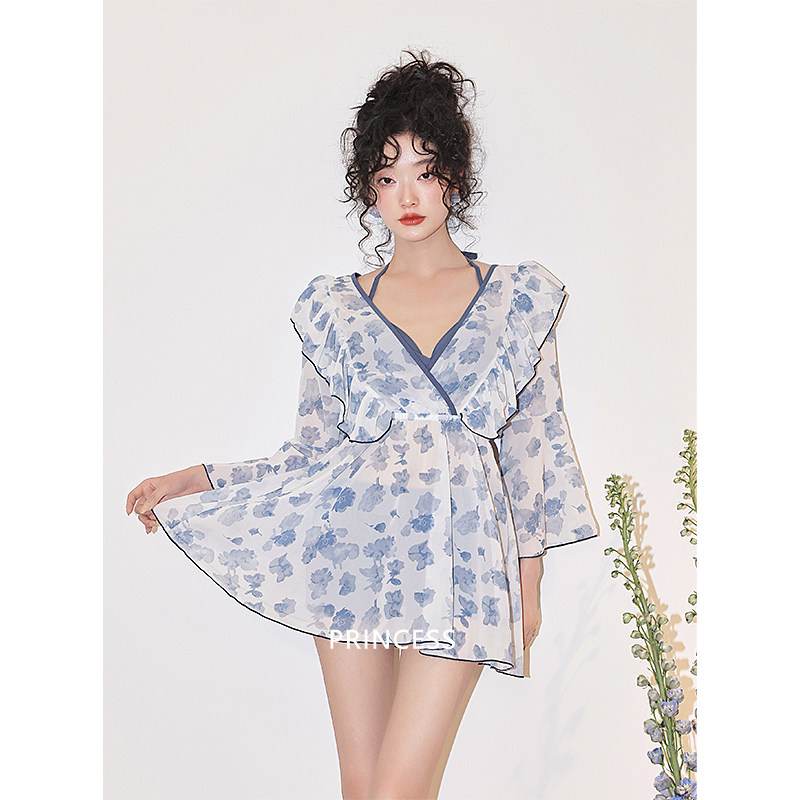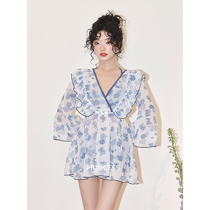 在逃公主泳衣女保守分体三件套2023新爆款夏遮肚显瘦泡温泉游泳装