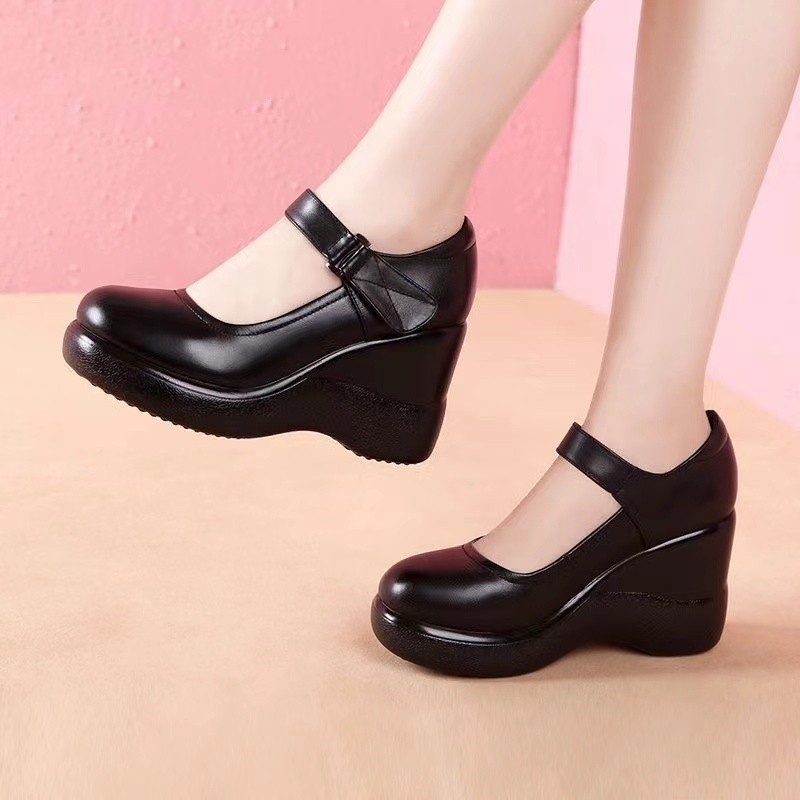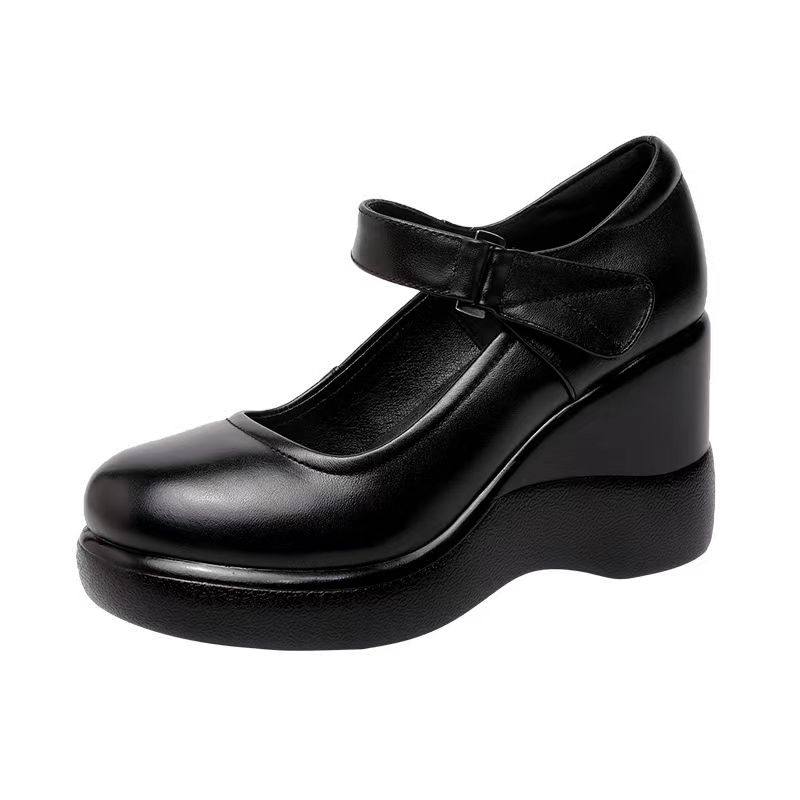 品牌撤柜款坡跟单鞋女2025新款松糕厚底中年妈妈鞋软底旗袍走秀鞋