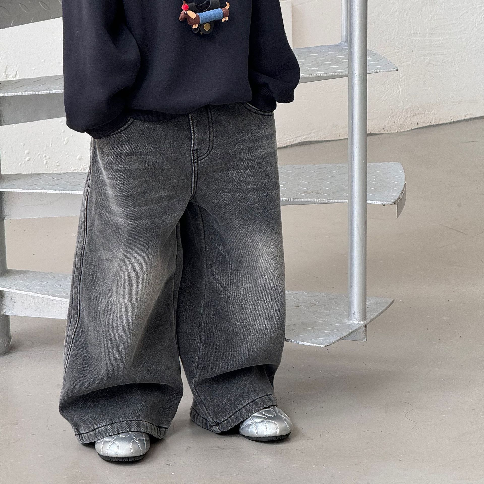 男童美式牛仔裤秋冬款2025新款儿童加绒裤子男孩秋装保暖直筒长裤