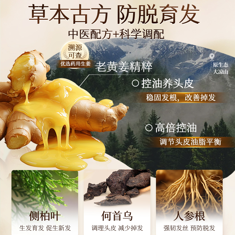 生姜防脱洗发水生发密发固发侧柏叶控油蓬松去屑止痒洗头膏露男女