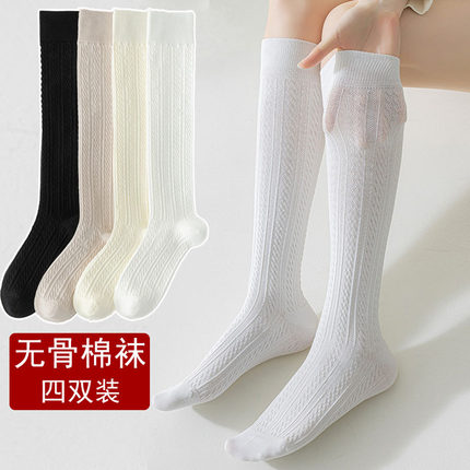 无骨小腿袜女薄款春夏瘦腿压力袜子纯棉jk及膝女士高筒长袜黑白色