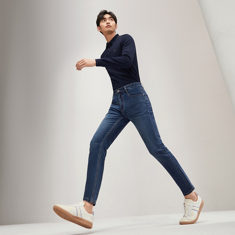 柒牌男士牛仔长裤2025春夏新款时尚潮流中青年休闲百搭九分小脚裤