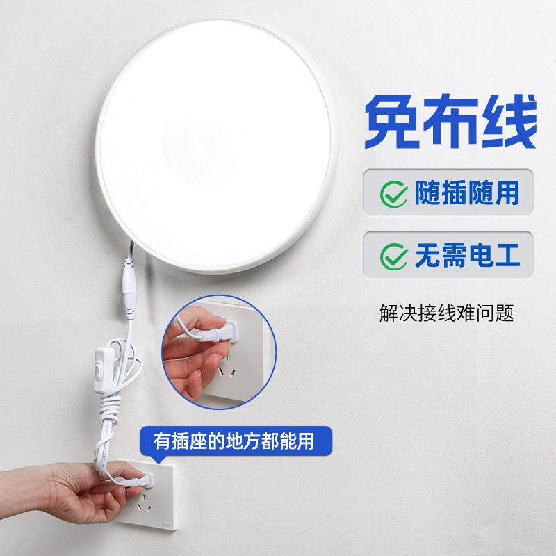 人体感应免布线直插式壁灯免安装LED厨房卧室灯插头卫生间吸顶灯