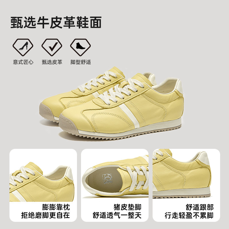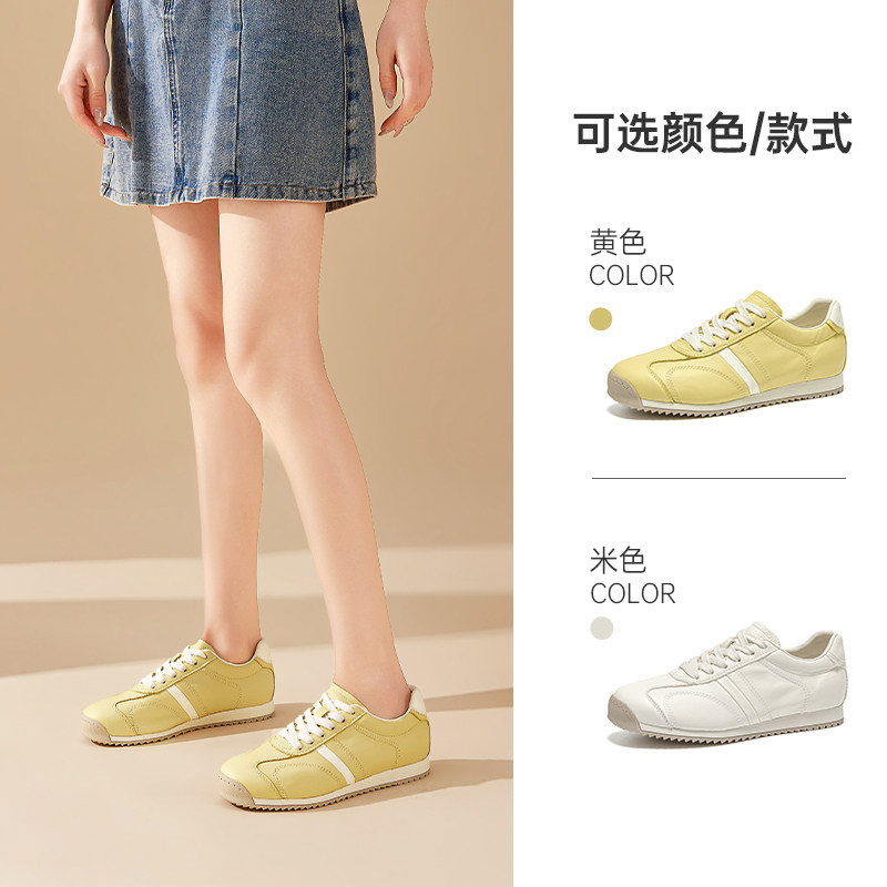 【商场同款】休闲平底德训鞋女2026春季新款真皮百搭运动阿甘鞋
