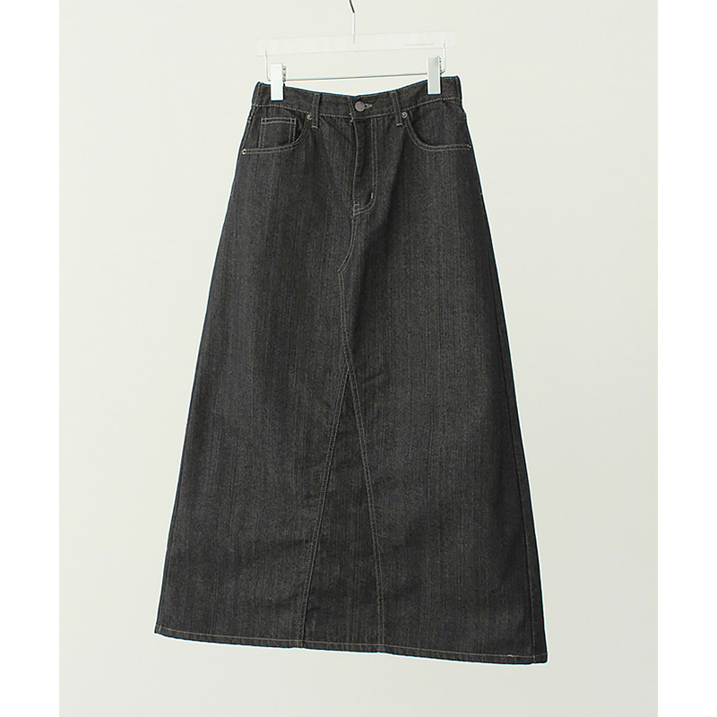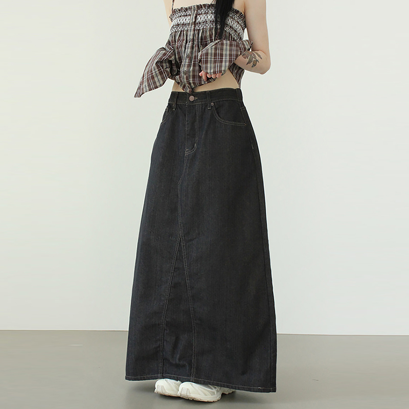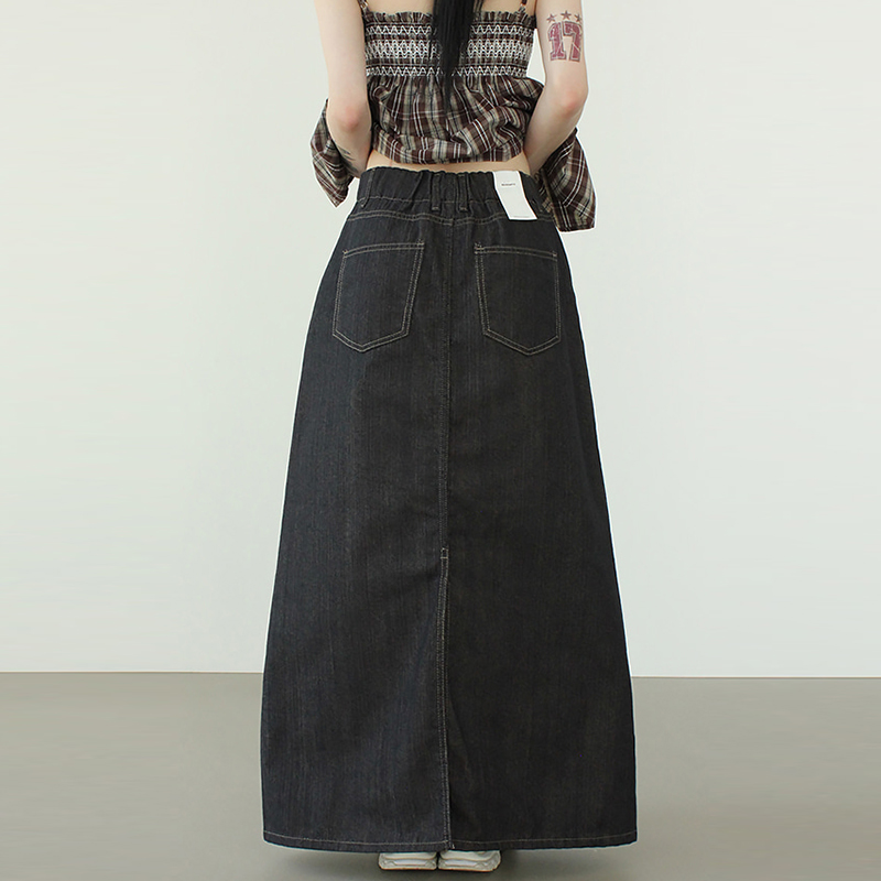 韩国代购25 raw denim banding long skirt 设计师款百搭牛仔长裙