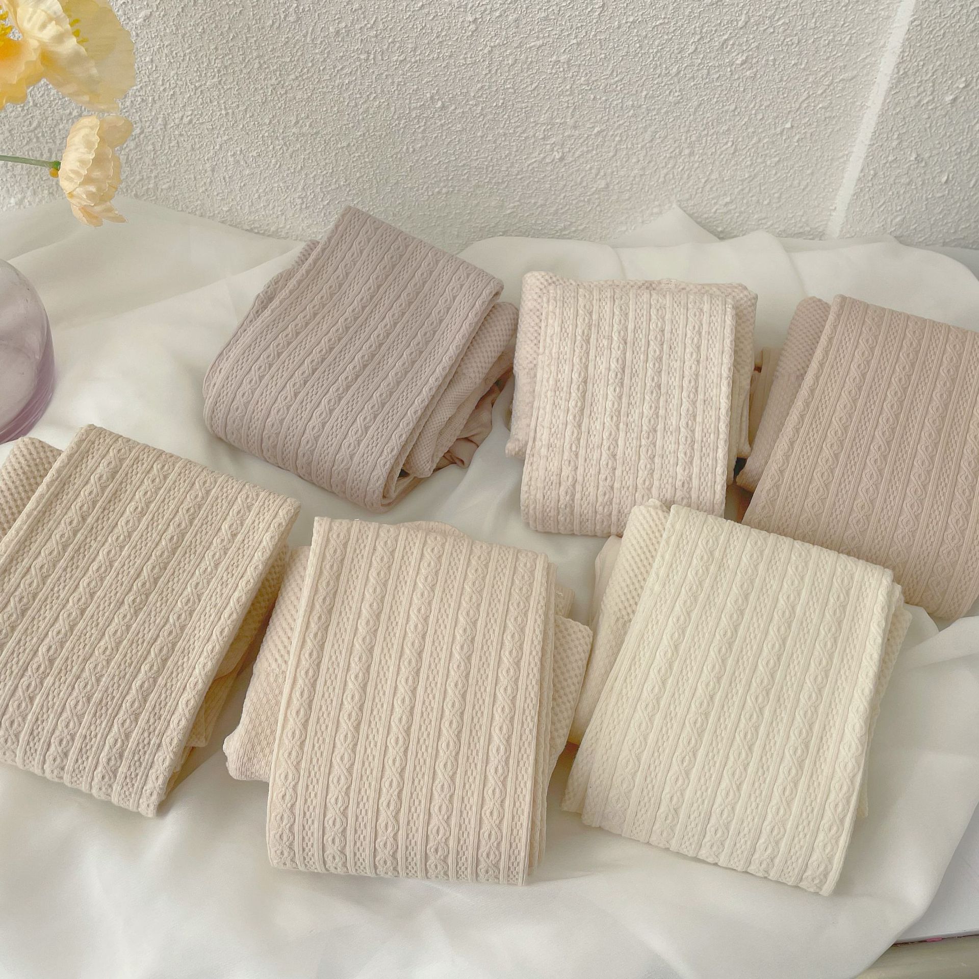 秋冬加绒棉质燕麦奶白色麻花连裤袜竖条压力保暖显瘦美腿打底裤袜