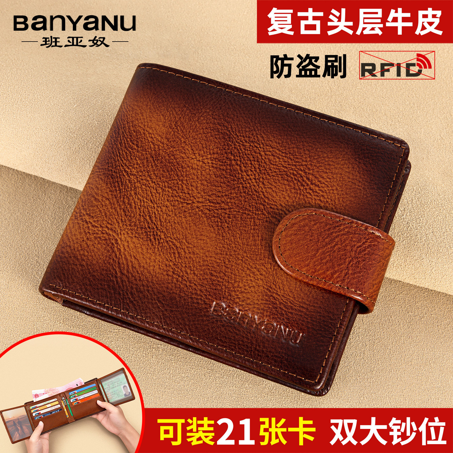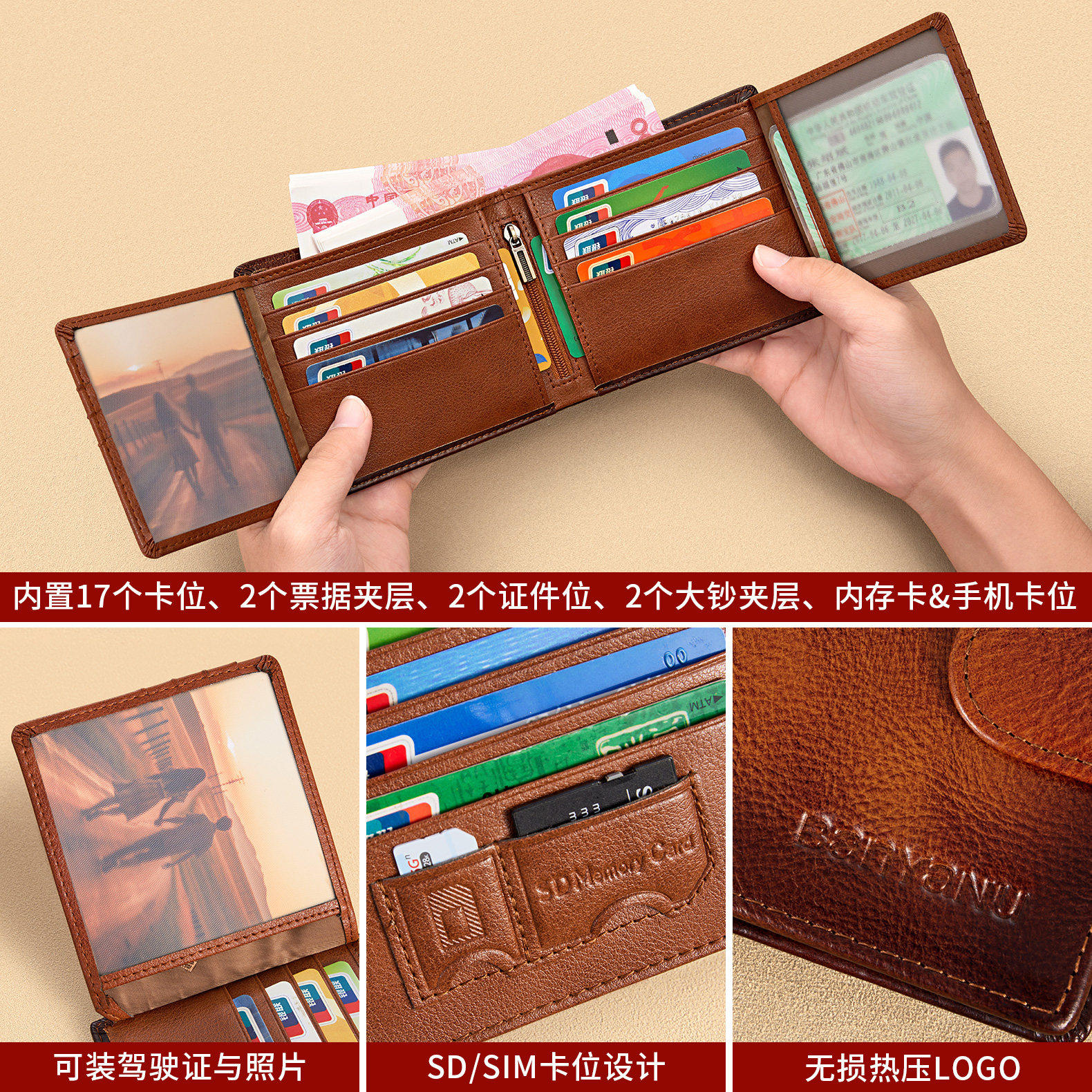 头层牛皮钱包男新款按扣多卡位驾驶证一体薄款时尚潮流真皮钱夹男