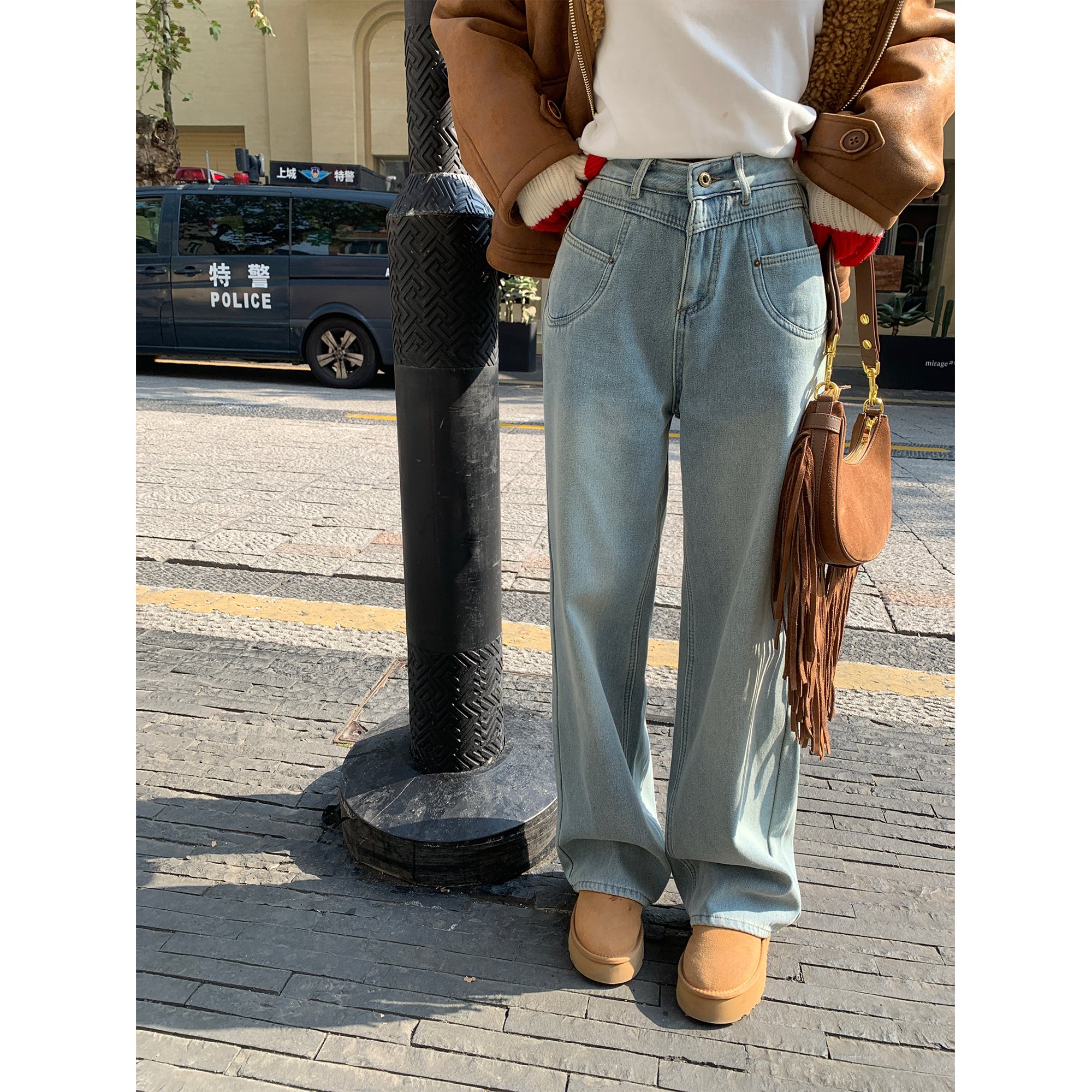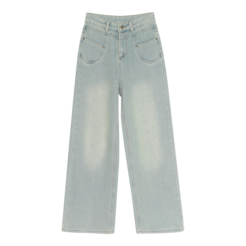 夏天家2025年新款早秋桃心口袋设计感高腰阔腿牛仔裤女春秋款裤子
