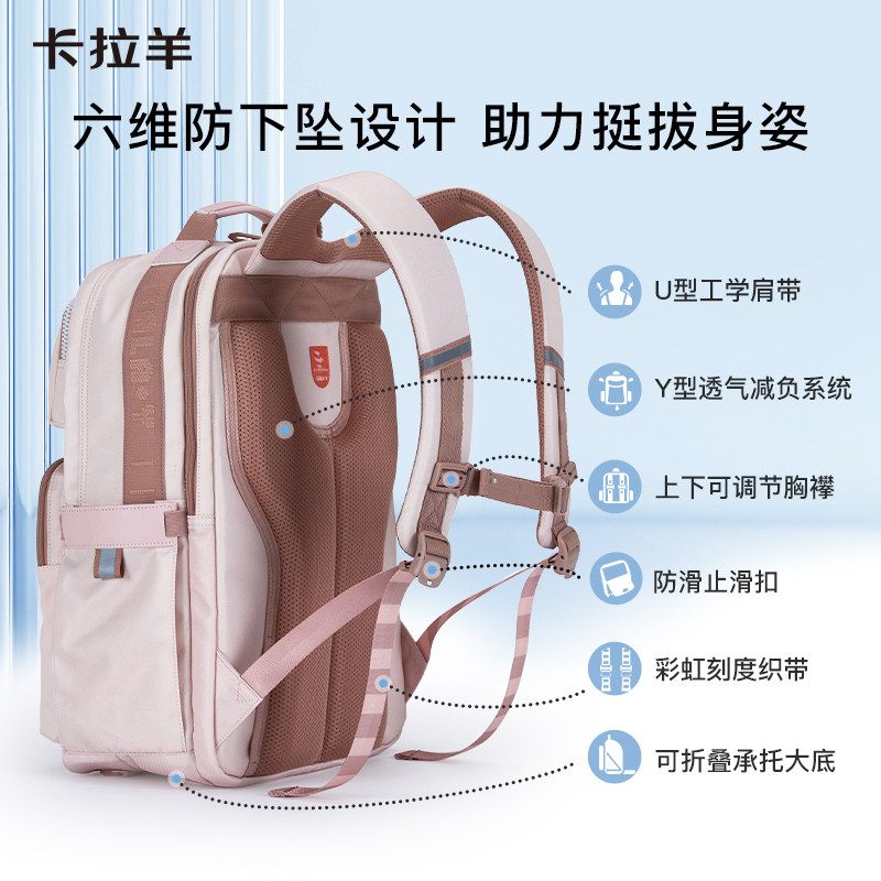 卡拉羊中学生云朵书包减负防下坠初中生双肩包背包女轻便多隔层