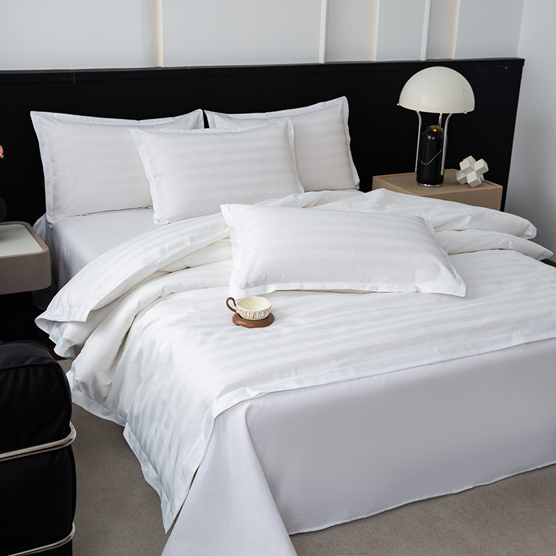 酒店床品四件套宾馆民宿纯白色公寓客栈被套床单布草专用床上用品