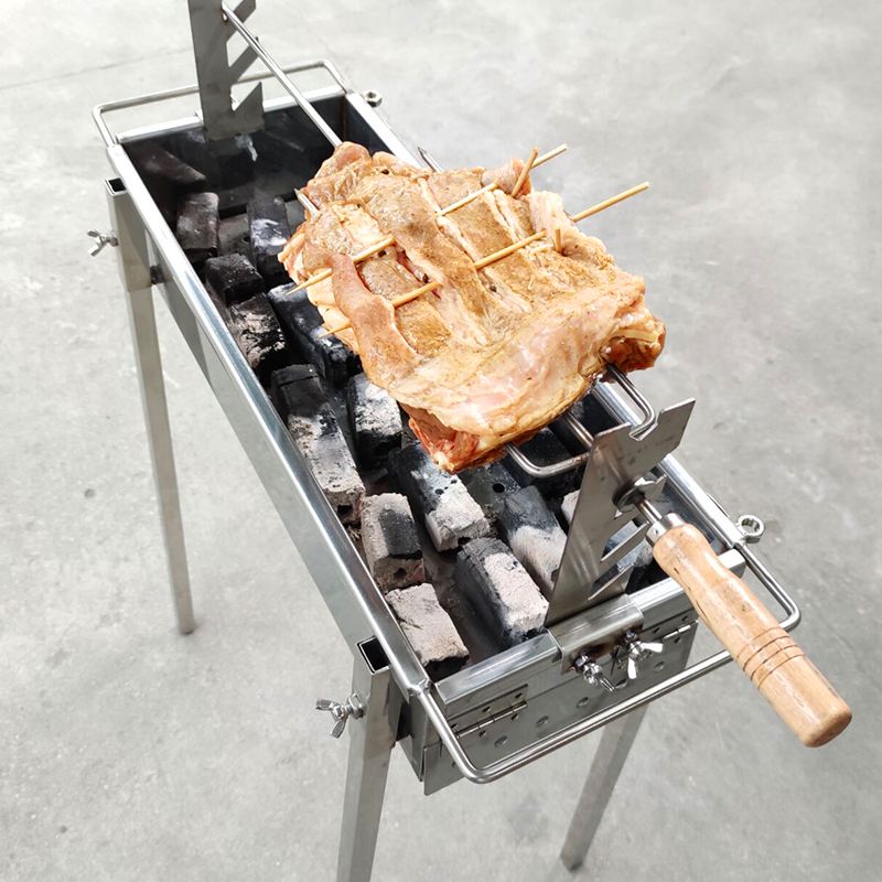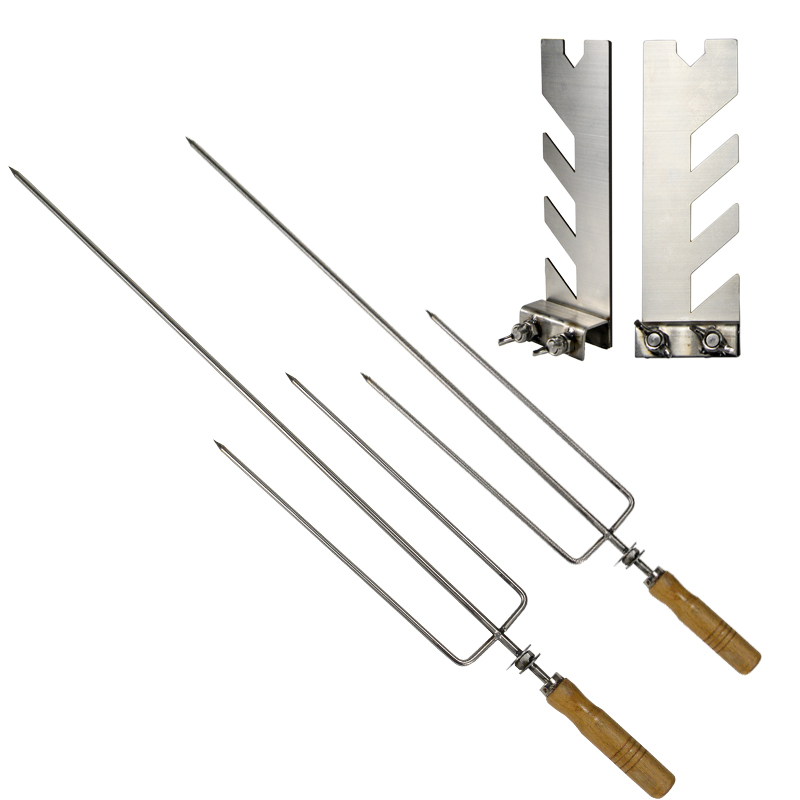 不锈钢烤羊腿烤架烤羊排支架烤羊腿叉子烤羊排木柄钢钎烧烤支架