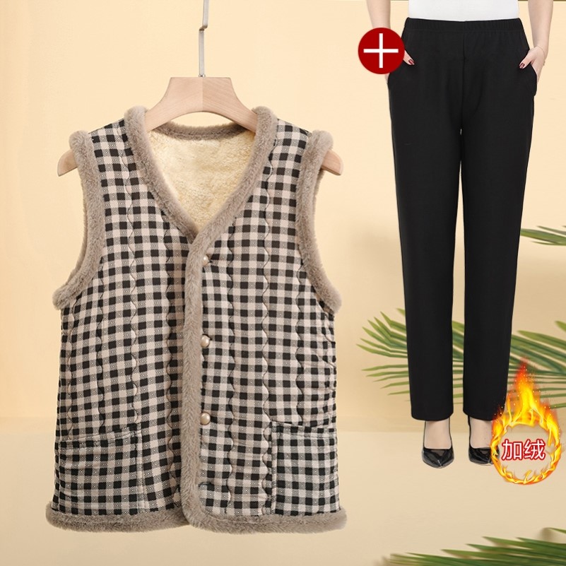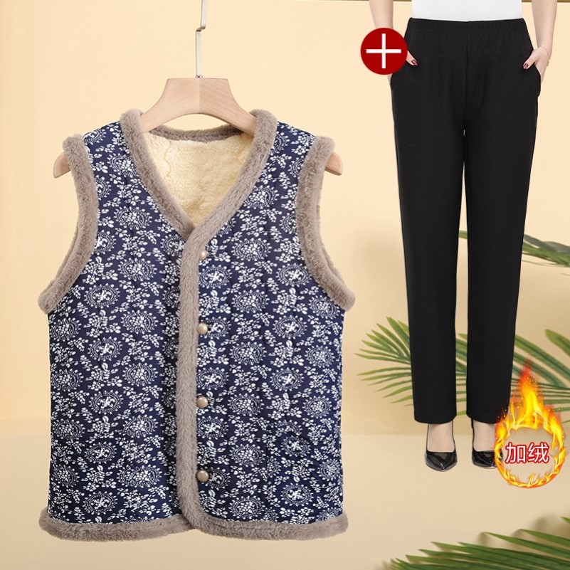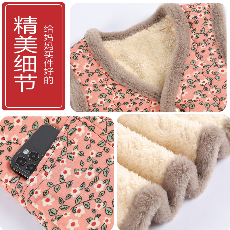 妈妈加绒加厚马甲棉衣外套秋冬装新款中年女装奶奶背心棉服中老年