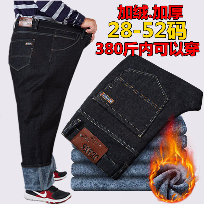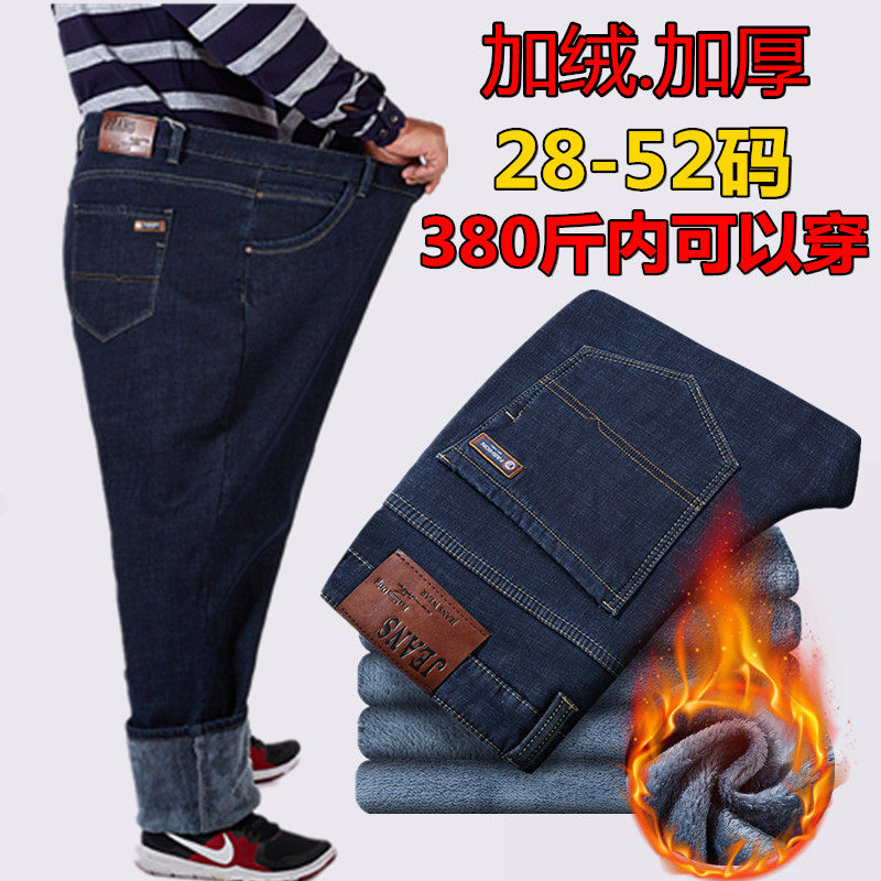 特大码宽松牛仔裤男士加肥加大码胖子加绒加厚肥佬裤直筒高腰长裤