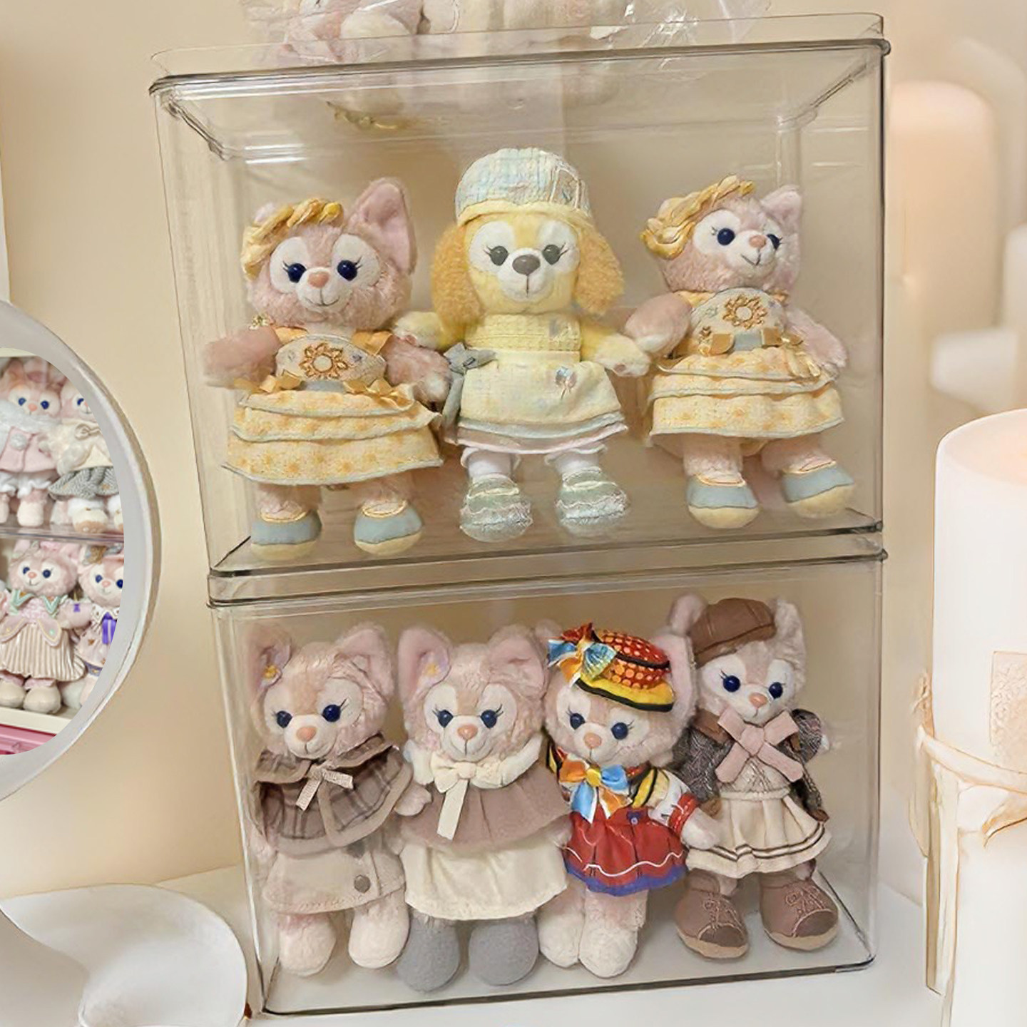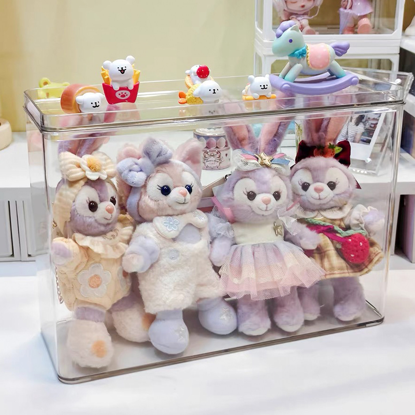 迪士尼挂件收纳盒亚克力玲娜贝儿展示盒透明防尘盒搪胶娃娃陈列柜