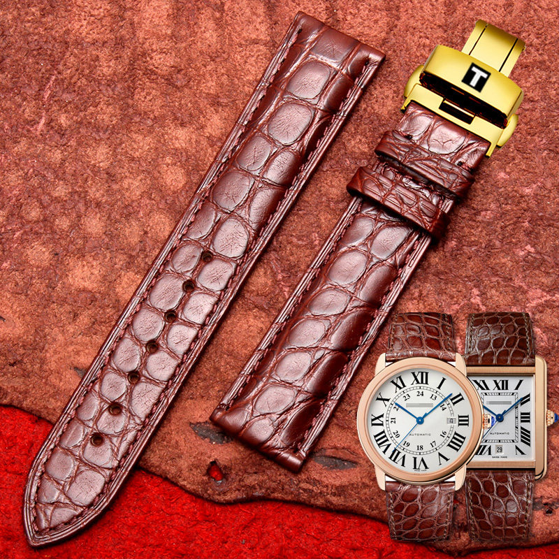 适配天梭TISSOT表带真皮鳄鱼皮力洛克T006恒意T065蝴蝶扣19 20mm