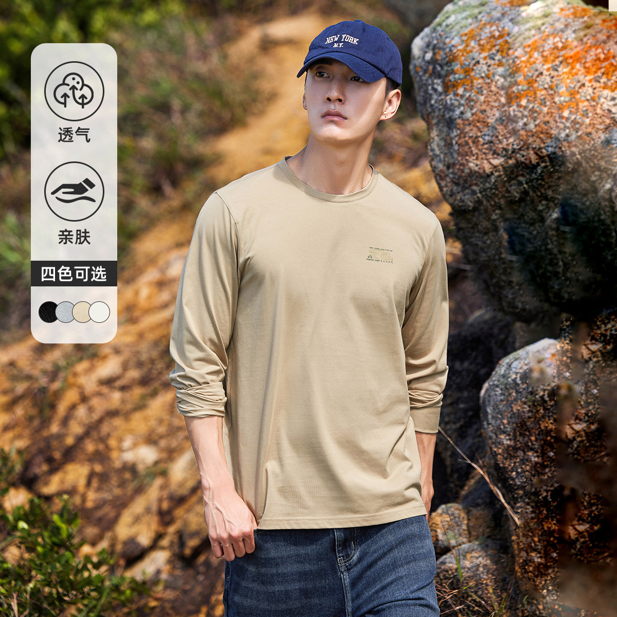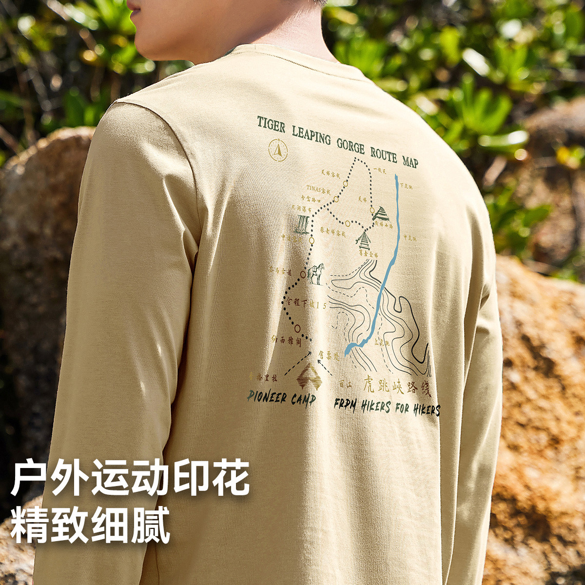 拓路者纯棉长袖T恤衫男秋后背印花圆领户外徒步套头打底衫T恤上衣