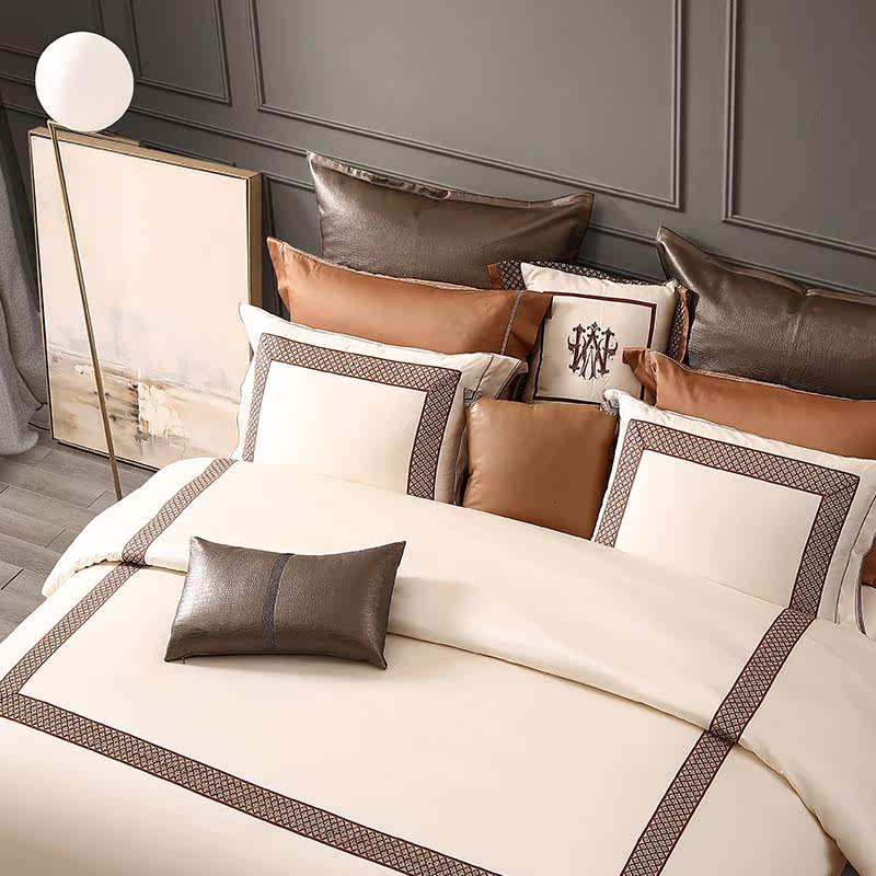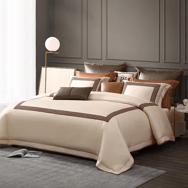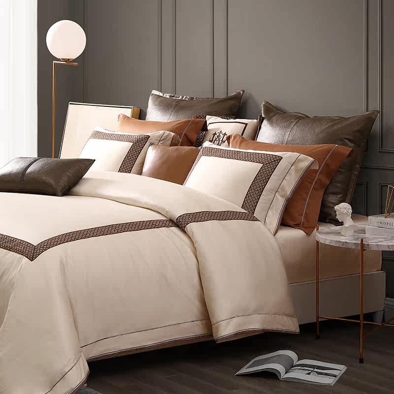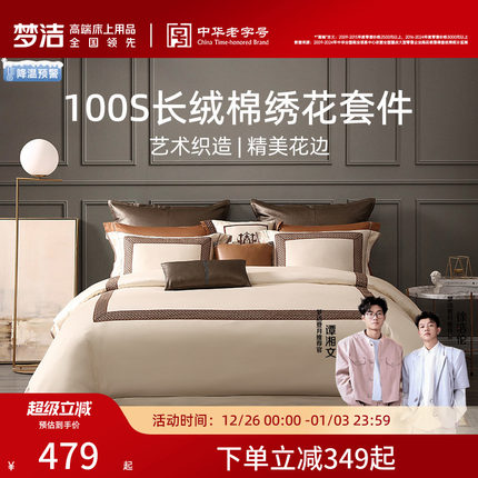 梦洁家纺长绒棉四件套100S素色蕾丝柔软丝滑床单床笠套件床上用品