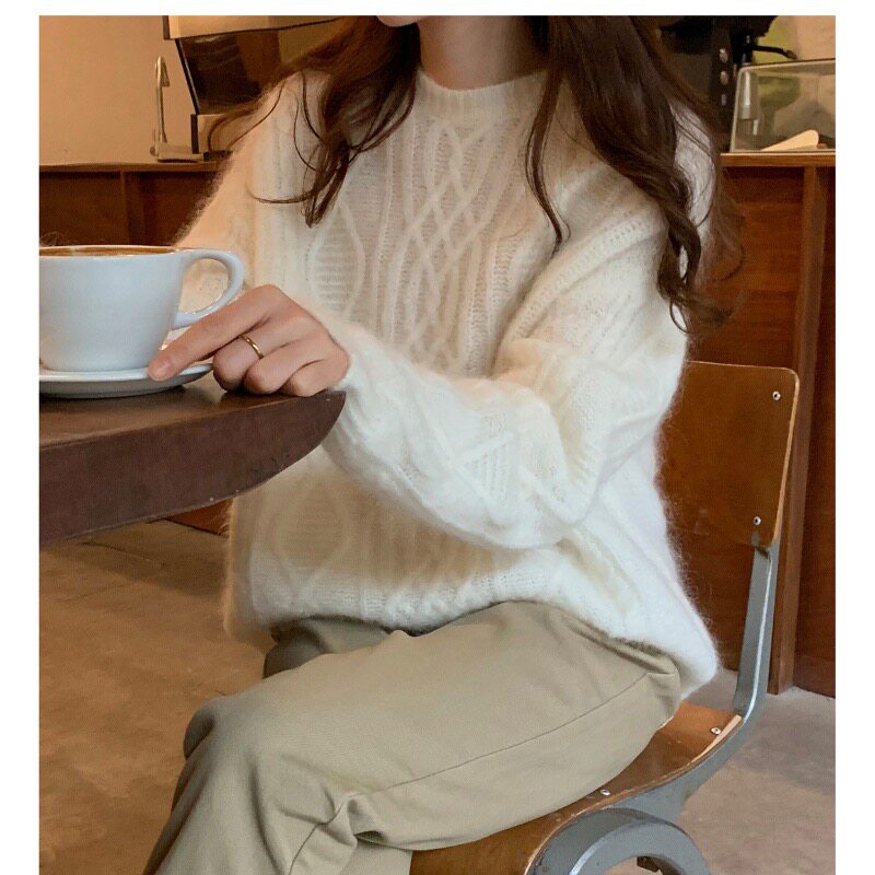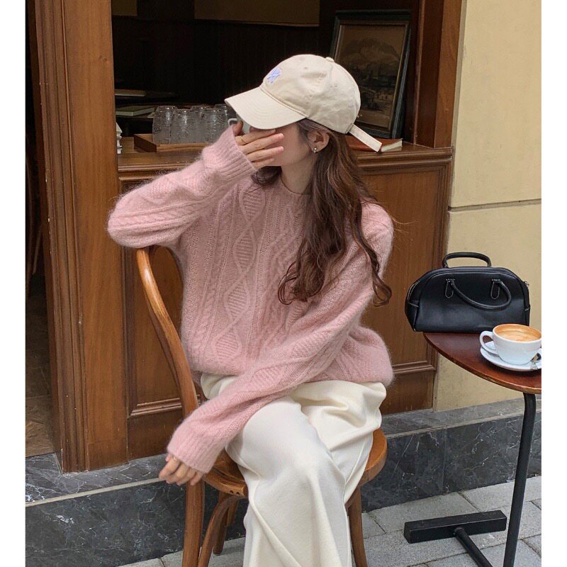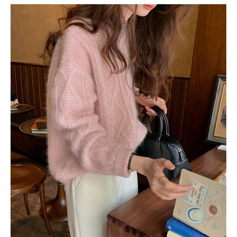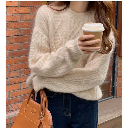 100%美丽诺羊毛衫女秋冬重磅麻花小个子针织衫慵懒风加厚羊绒毛衣