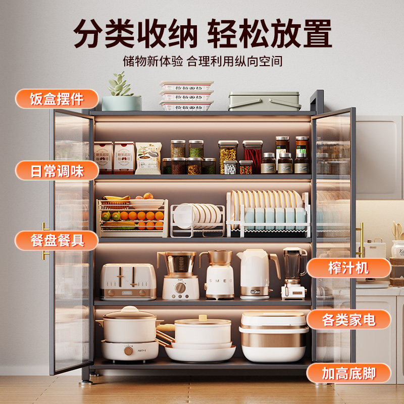 家用厨房多功能置物架碗柜落地微波炉储物柜一体落地收纳柜橱柜子