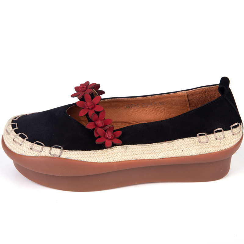 烁掌柜原创复古手工擦色真皮女鞋松糕厚底麻绳文艺范花朵浅口单鞋