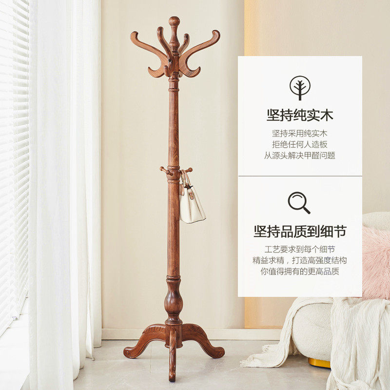 全实木衣帽架卧室落地立式挂衣架客厅房间办公室中式家用大衣服架