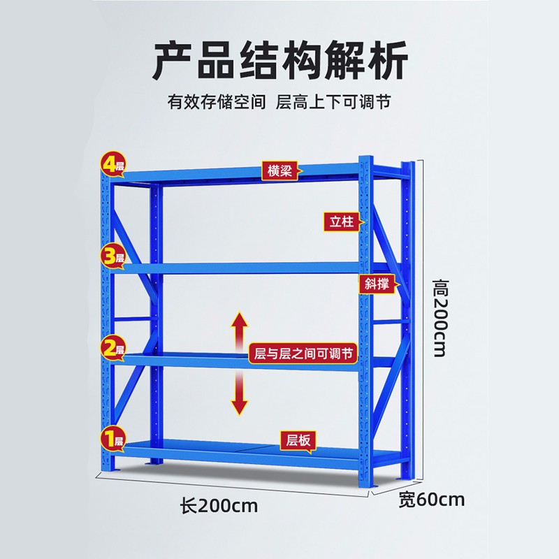 极速仓库中型货架落地多层置物架仓储收纳置物R架快递库房商用展