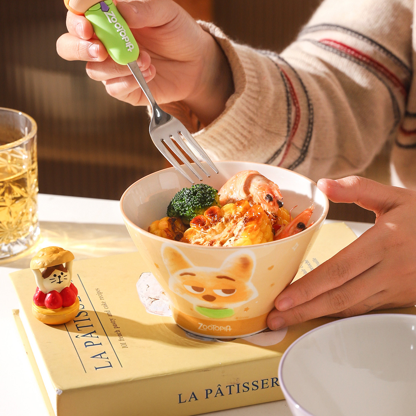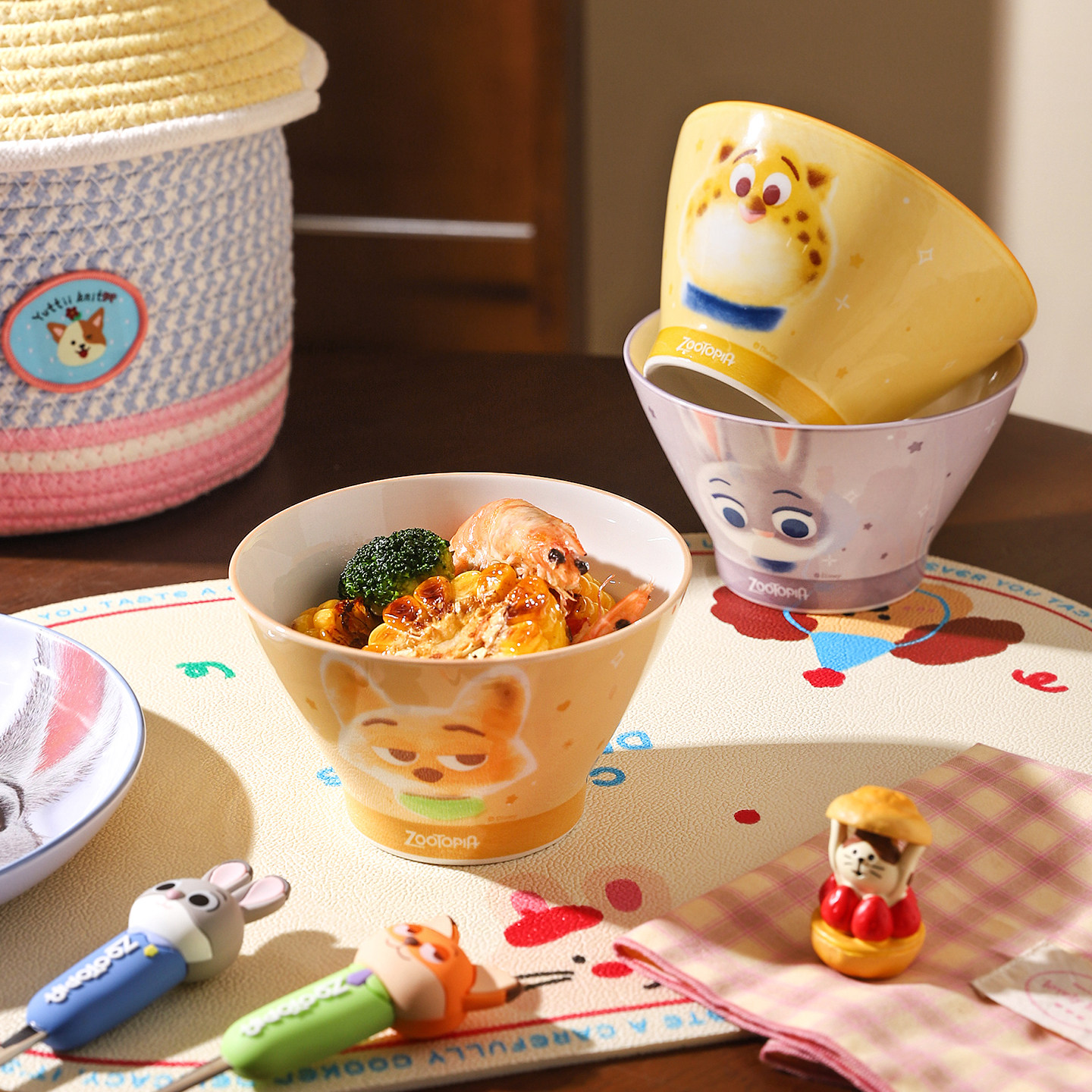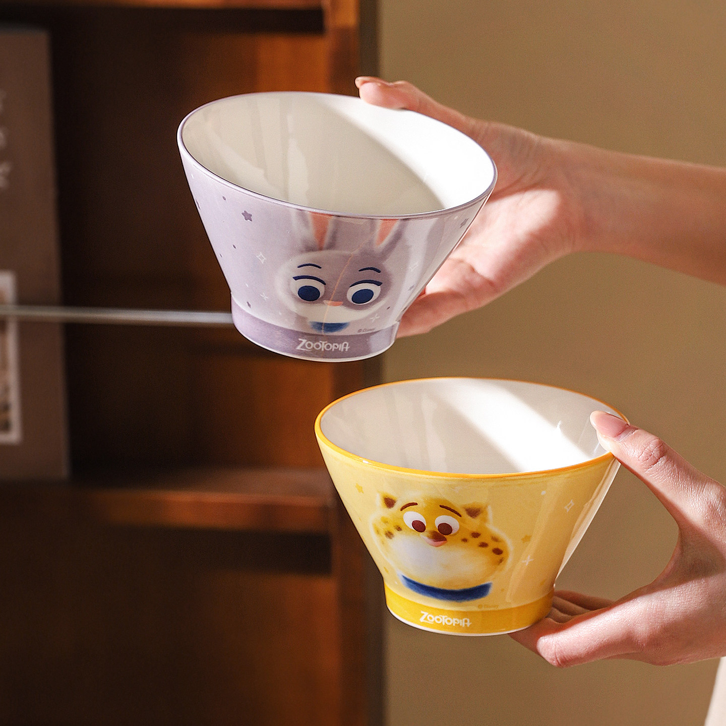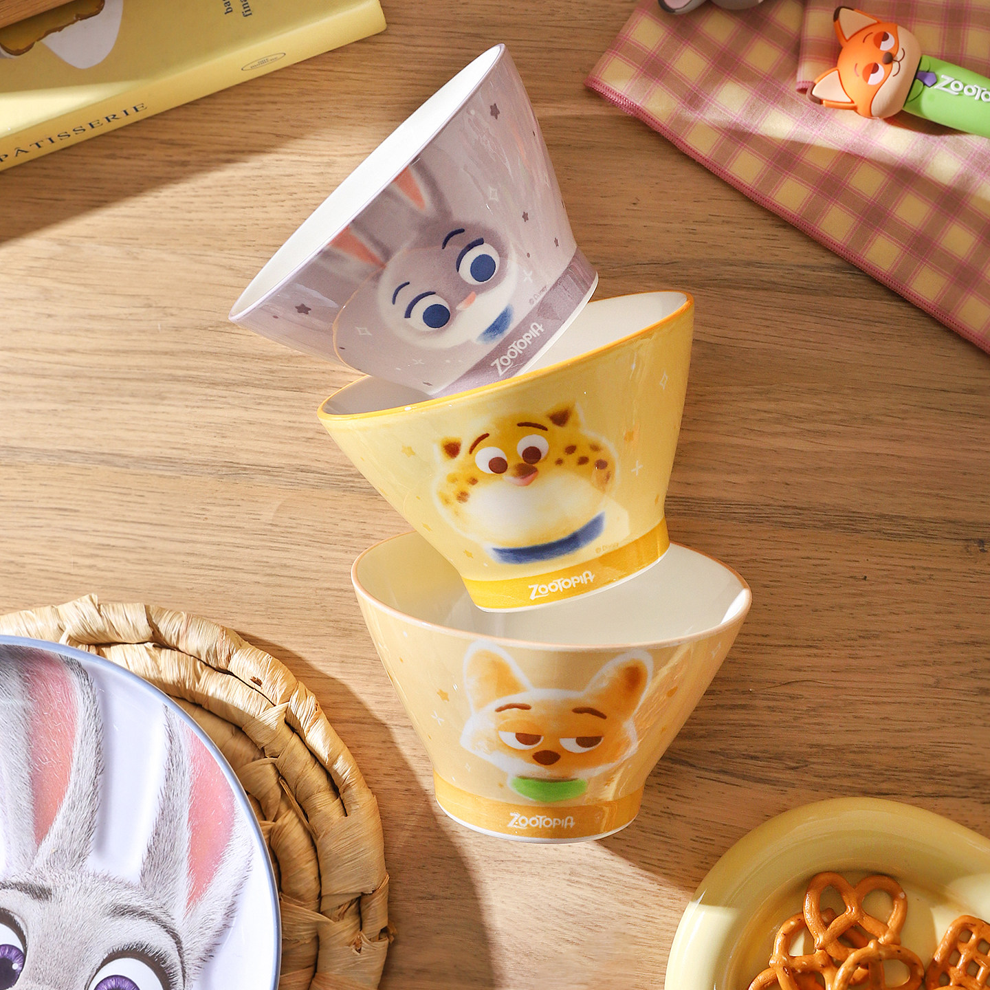 舍里疯狂动物城陶瓷斗笠碗高颜值儿童可爱米饭碗酸奶甜品碗水果碗