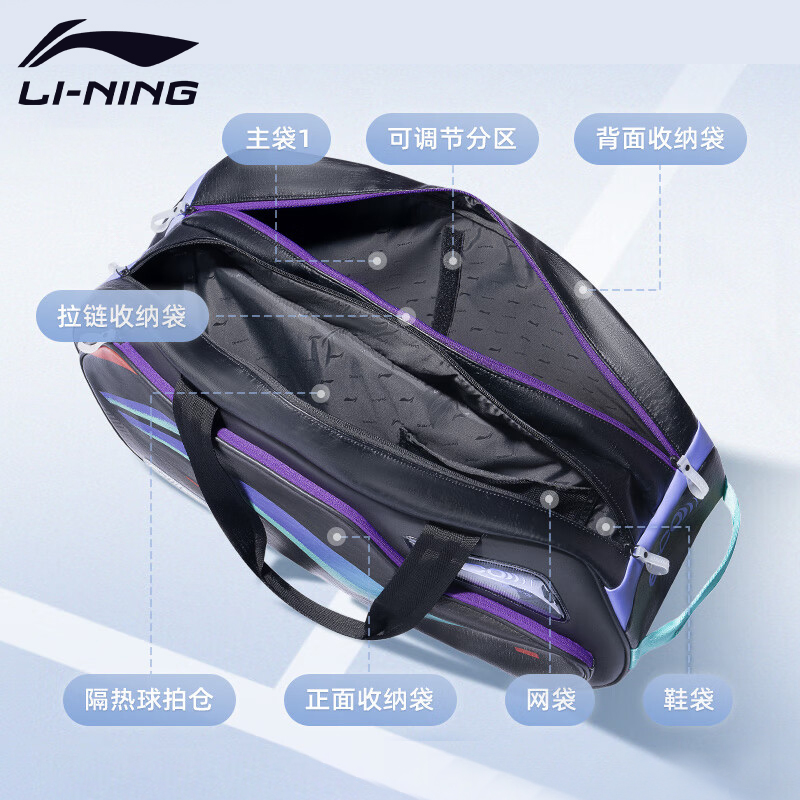 正品新款李宁ABJU013羽毛球包男女款矩形包单肩背包6支装独立鞋仓