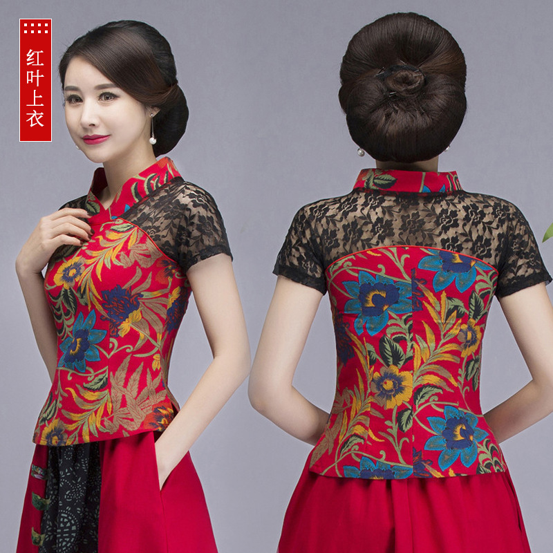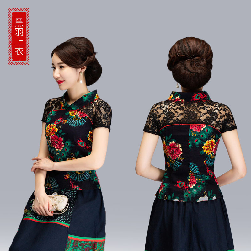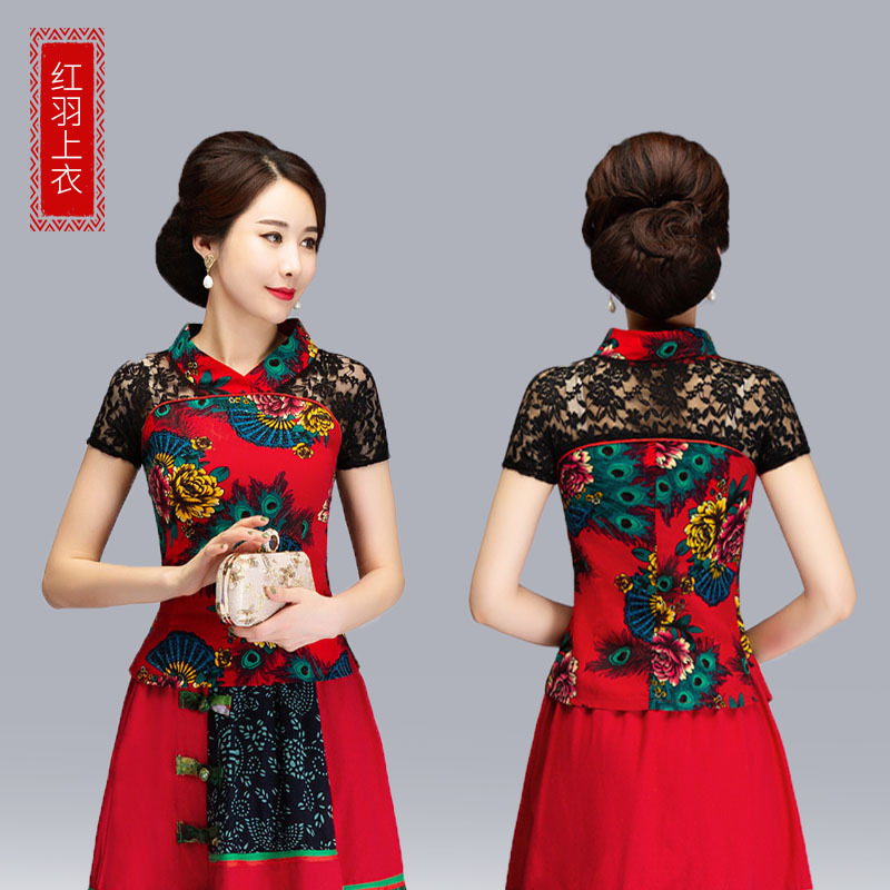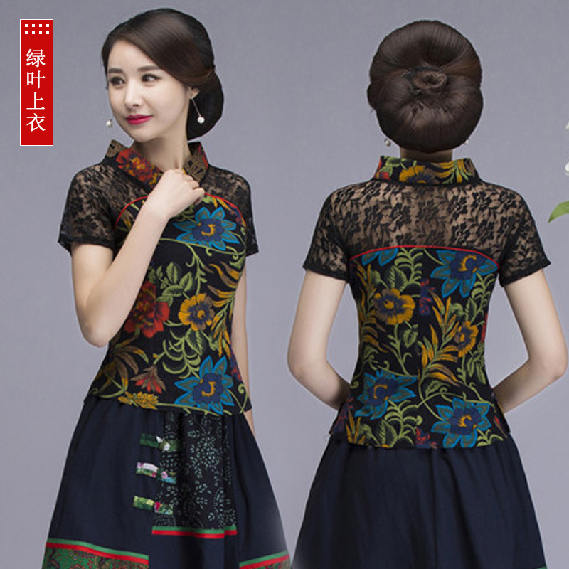 夏季民族风女装棉麻短袖上衣唐装女中国风改良旗袍大码古风妈妈装