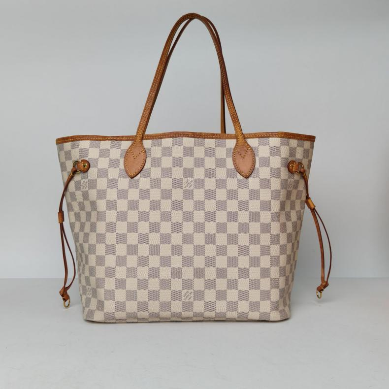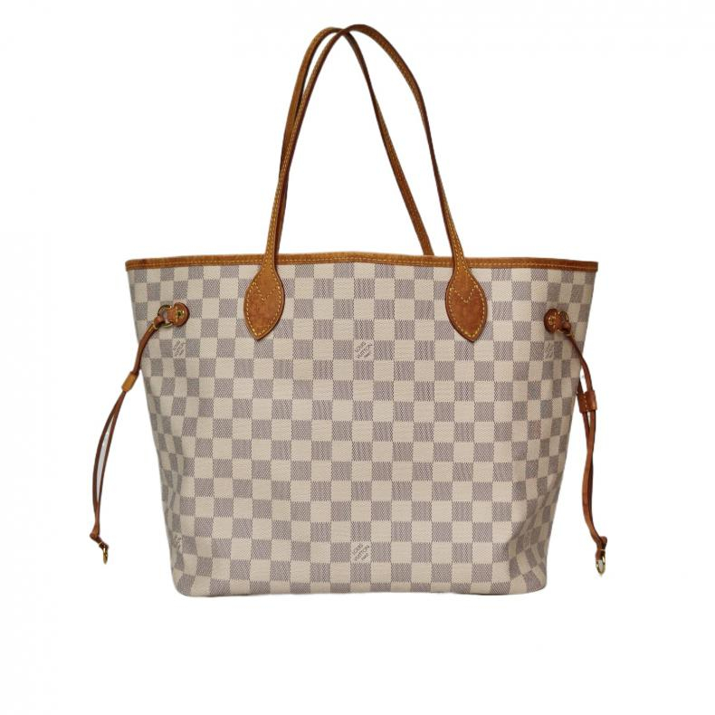 【自营】中古9新LV/路易威登单肩包Neverfull中号配子袋白棋格PVC