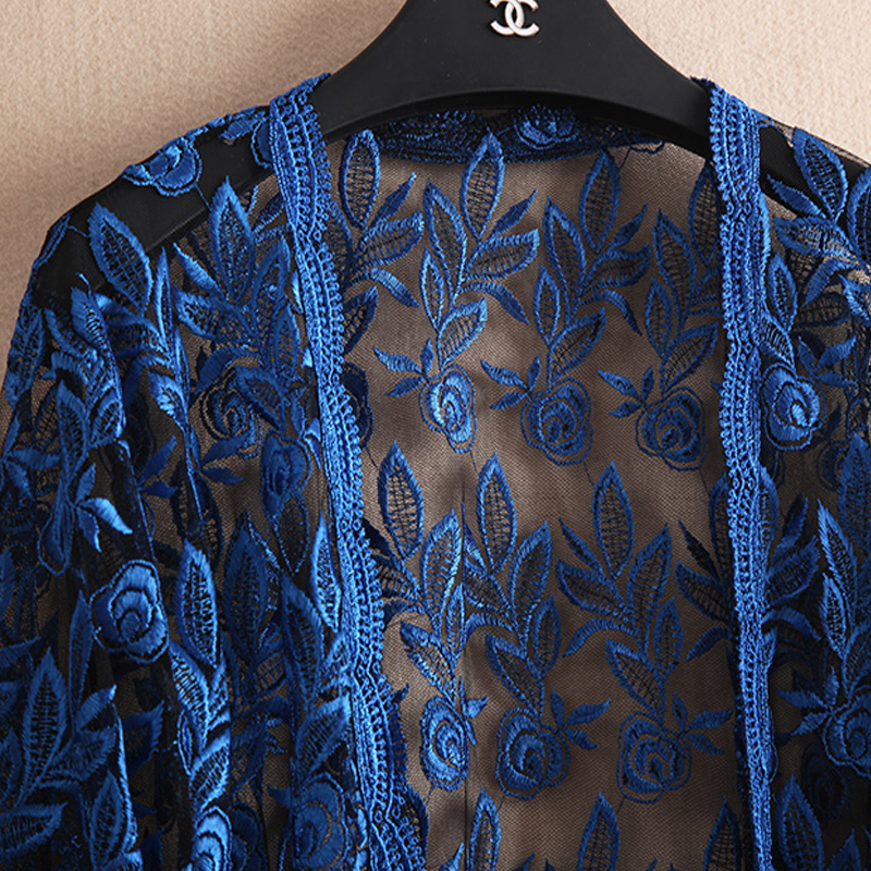 中年披肩女蕾丝开衫中长款薄秋40-50岁宽松大码外搭妈妈防晒外套