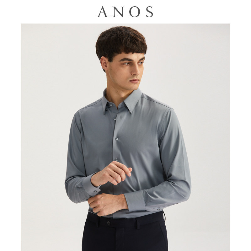 ANOS竹纤维云感免烫衬衫男长袖修身透气春秋抗皱商务暗扣弹力衬衣