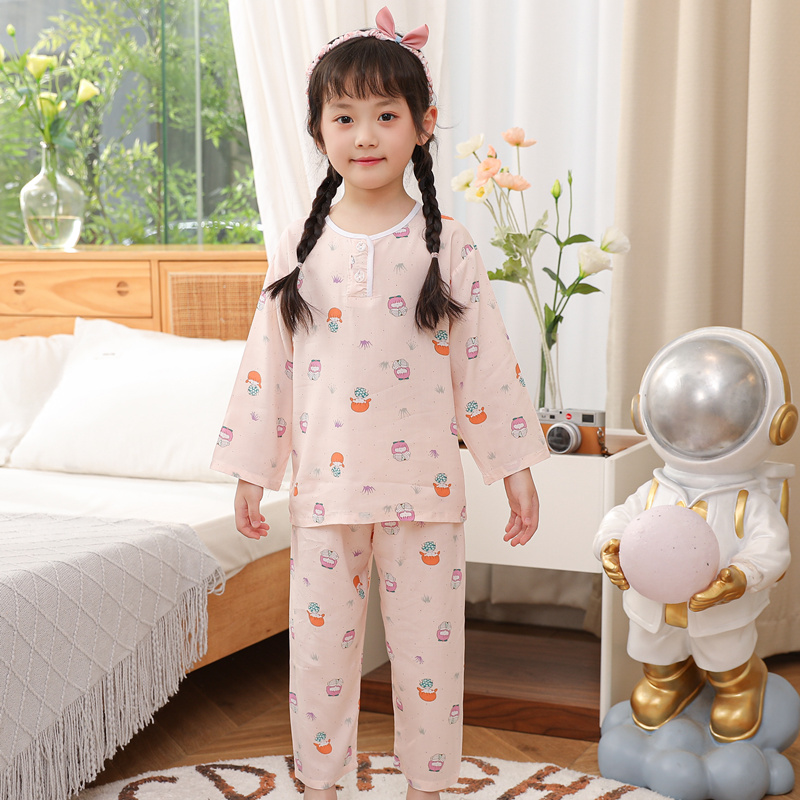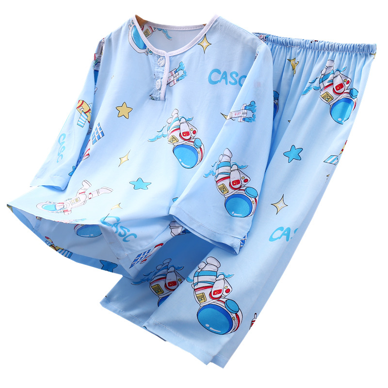 儿童棉绸睡衣男童夏季薄款空调服绵绸女童家居服卡通宝宝小孩长袖