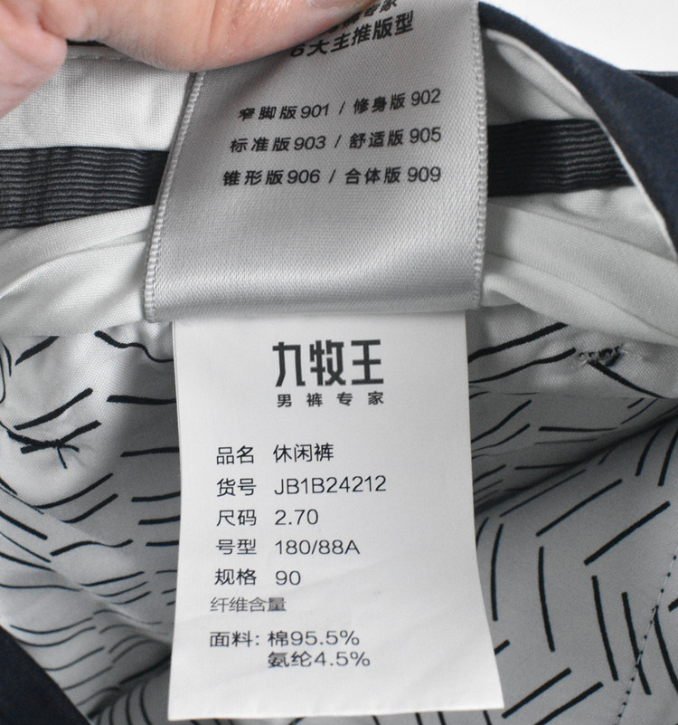【纯棉】2025九牧王新款春夏男士直筒休闲裤JB1B24212
