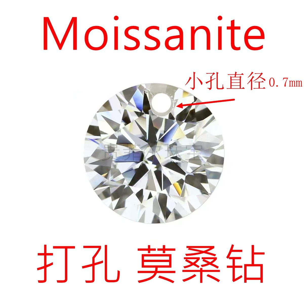 打孔 莫桑钻 裸钻 莫桑石裸石 八心八箭切工 圆形 水滴形 定制