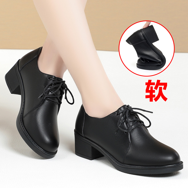 妈妈鞋真皮舒适软底女不累脚休闲中跟单鞋中年中老年女士皮鞋粗跟