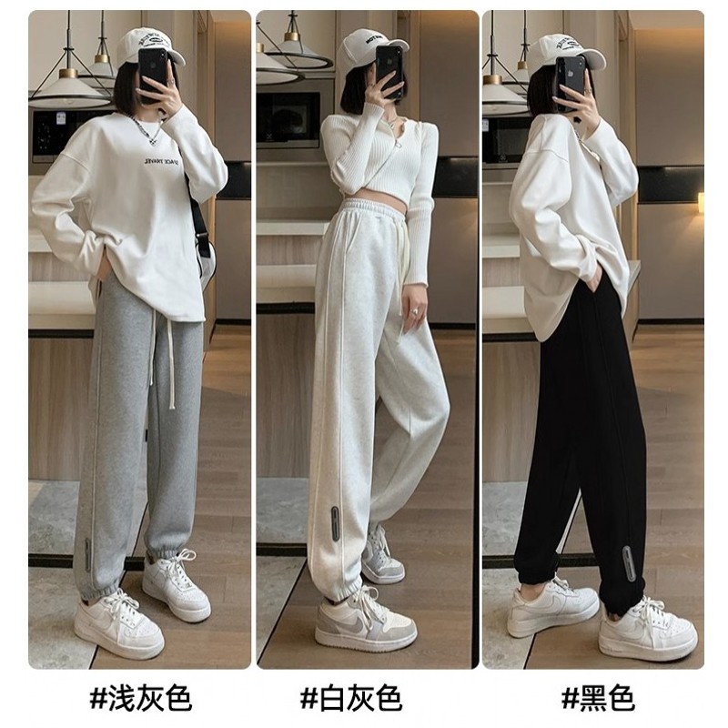 清仓捡漏~加绒加厚休闲运动哈伦裤女秋冬新款宽松高腰束脚萝卜裤