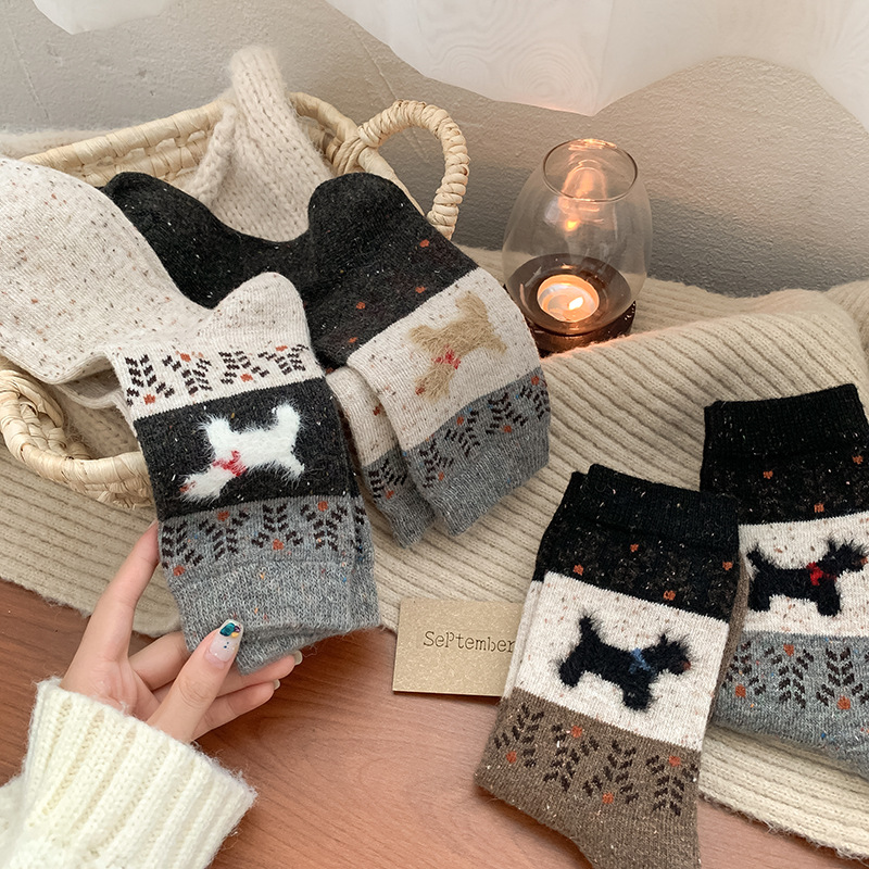 冬季爆款费尔岛袜子女西高地炸毛狗复古民族风羊毛保暖中筒袜