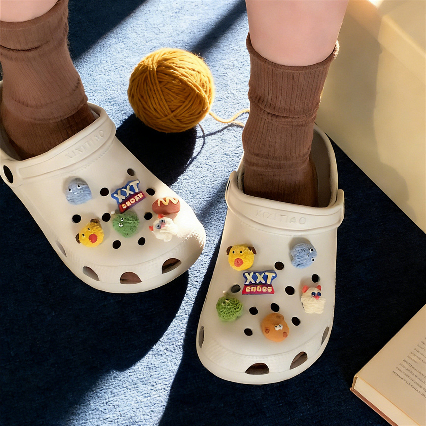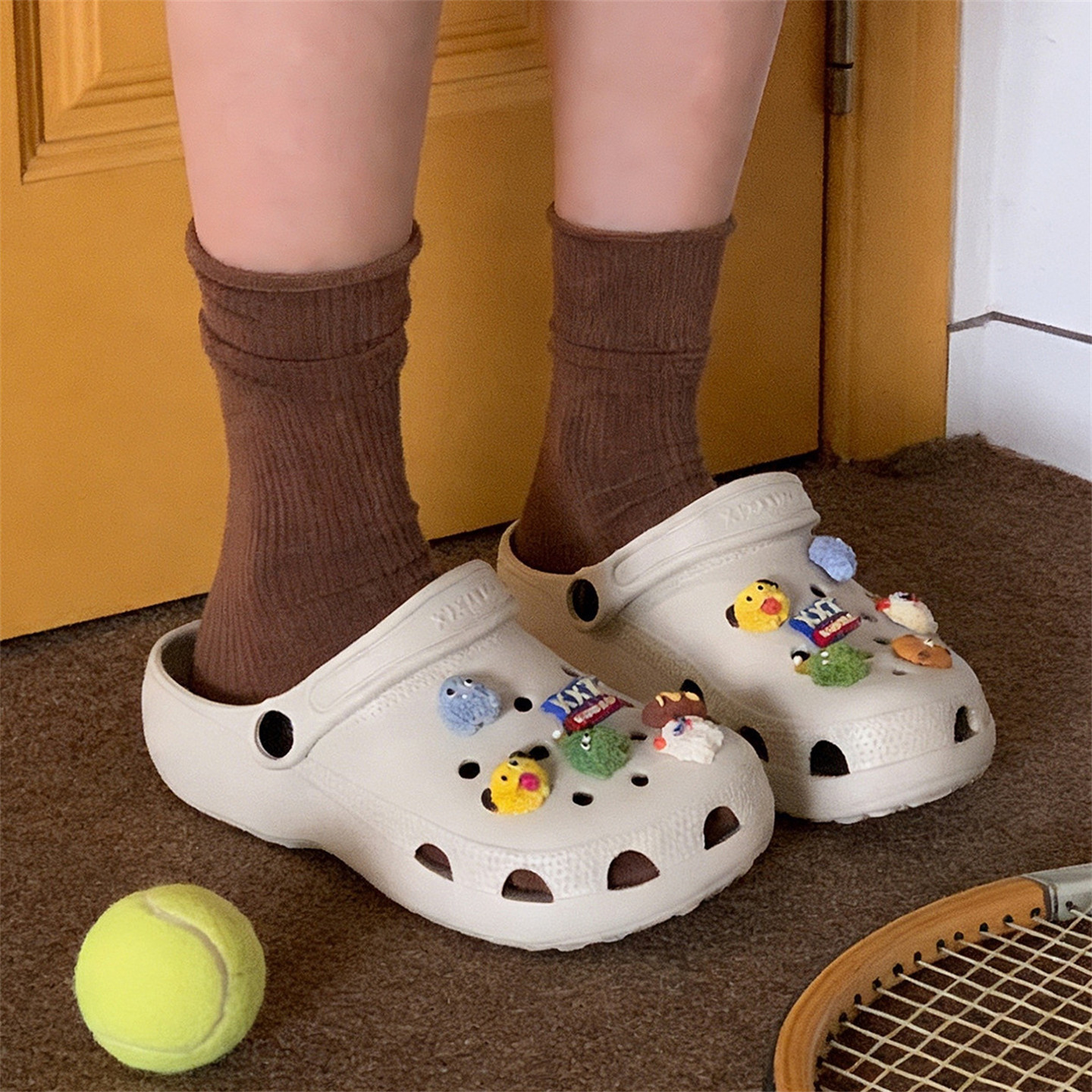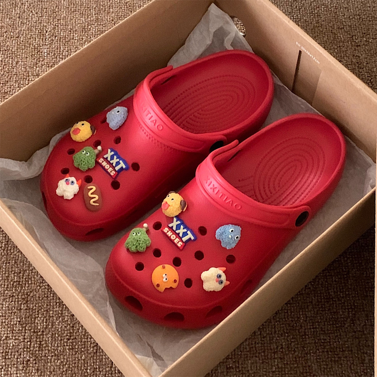 细细条趣味小怪兽本命年洞洞鞋