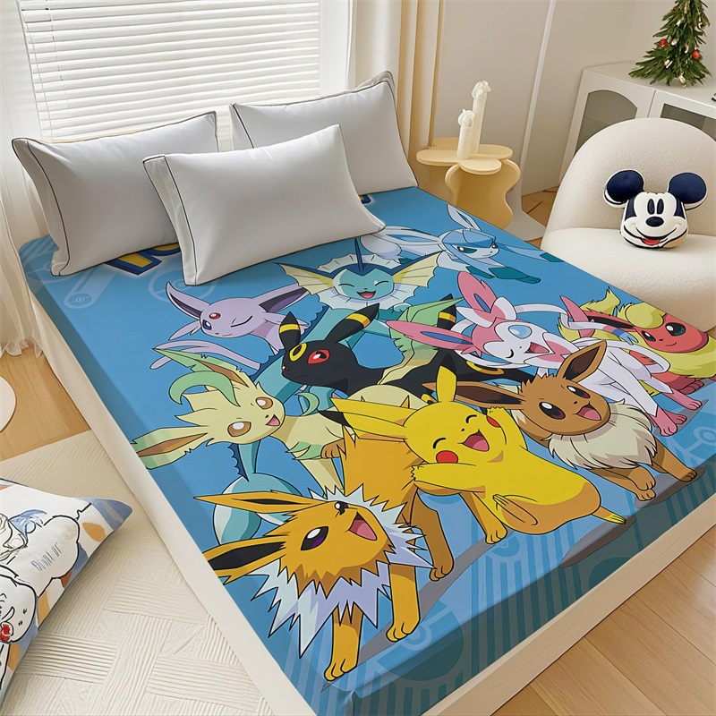 儿童卡通皮卡丘床笠单件1.5m床席梦思床垫保护套学生宿舍动漫床罩