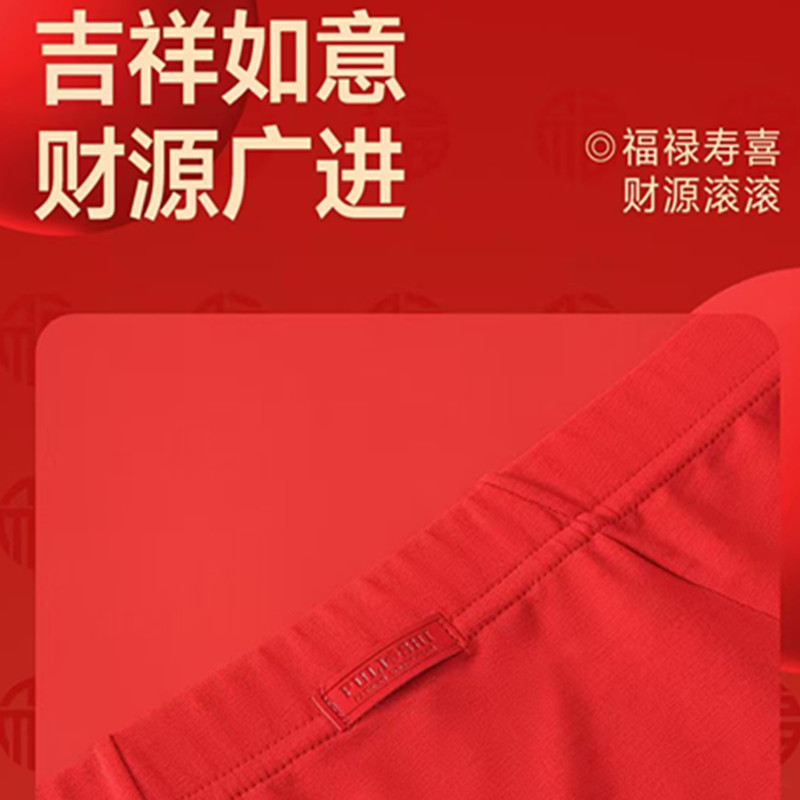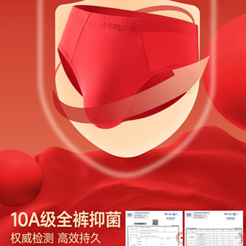 普利诗内裤男匹马棉鸿运大红本命年10A抗菌青年中腰三角裤头6376