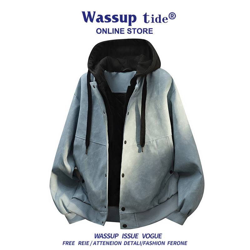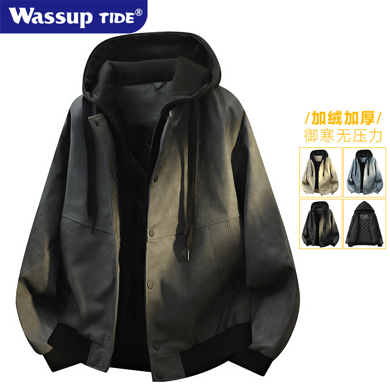 WASSUP TIDE男士皮衣秋季美式潮牌宽松骑行皮夹克时尚设计感外套