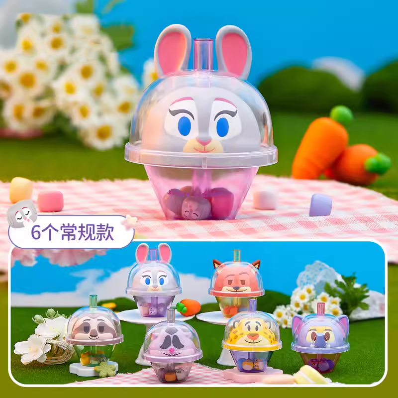 正版迪士尼疯狂动物城芋圆奶茶系列盲盒尼克朱迪手办公仔摆件礼物