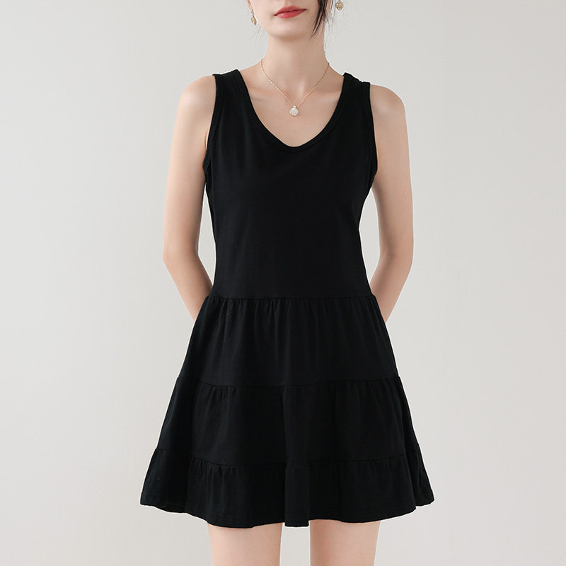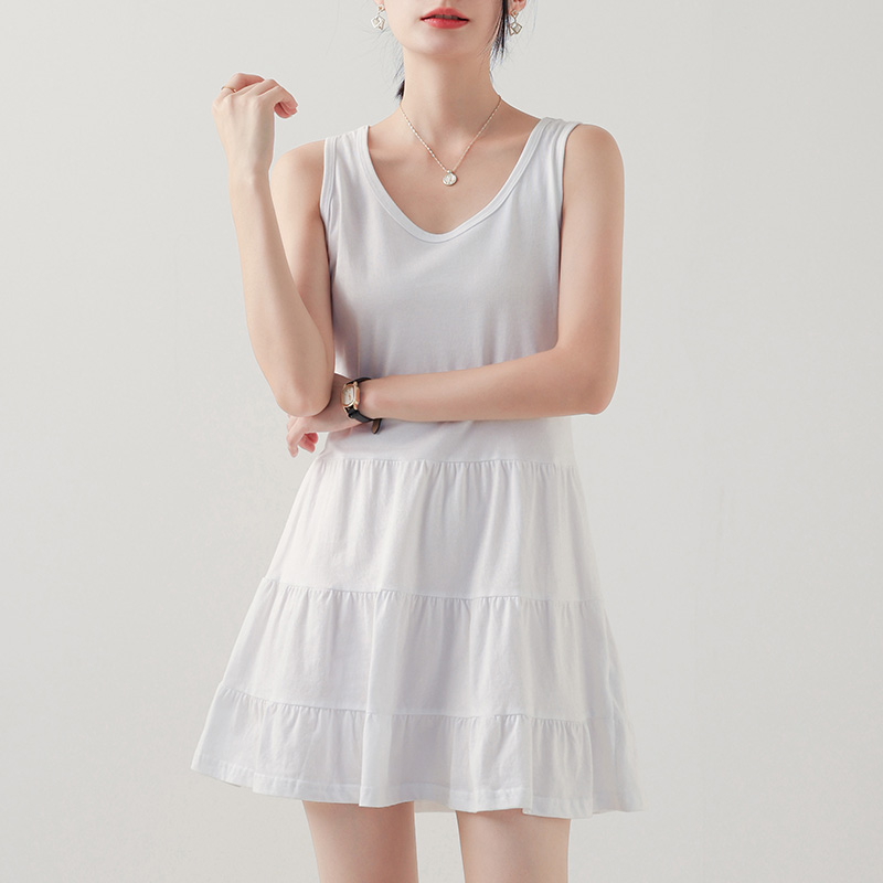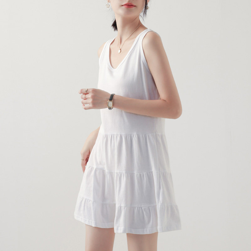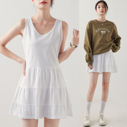 卫衣打底吊带背心裙叠穿内搭白色中长款无袖A字连衣裙遮屁股下摆