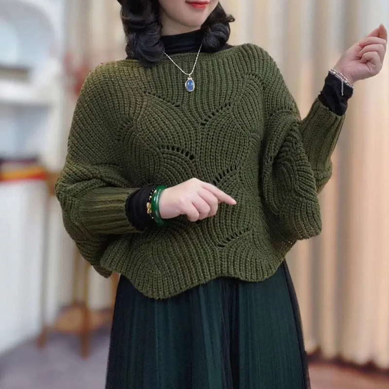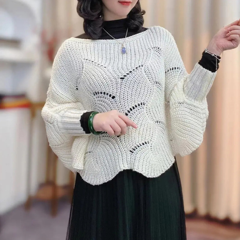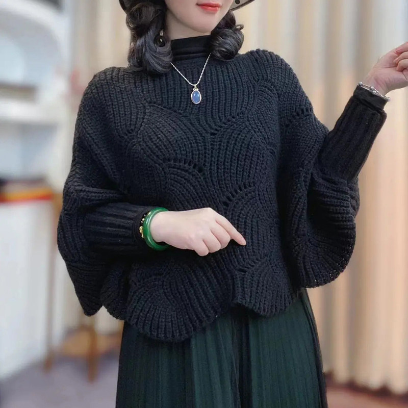 新款蝙蝠衫时尚澳绒套头披肩围巾女秋冬外搭镂空针织宽松袖子毛衣