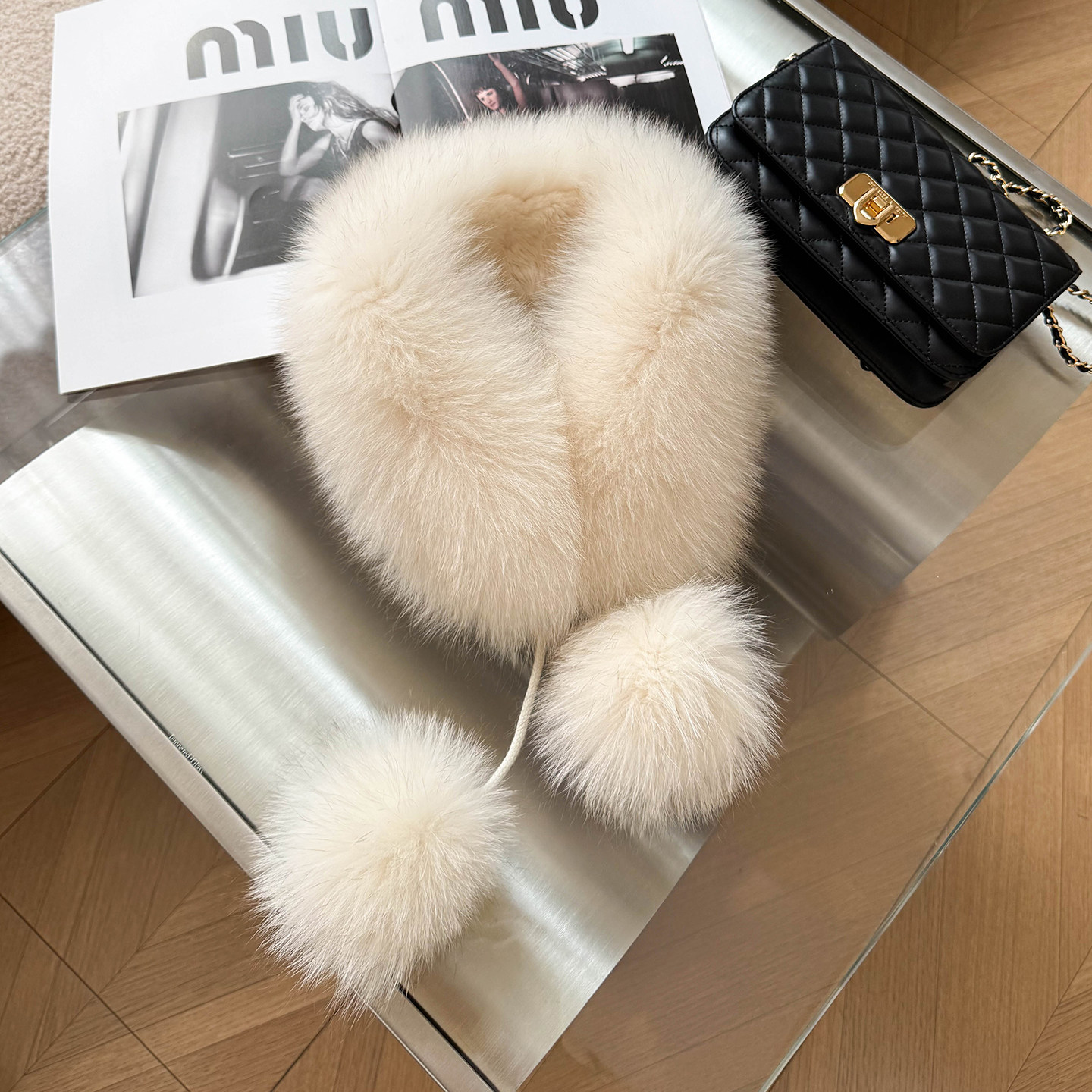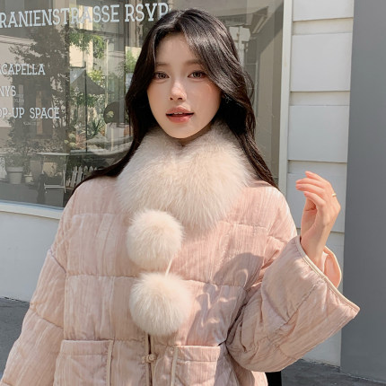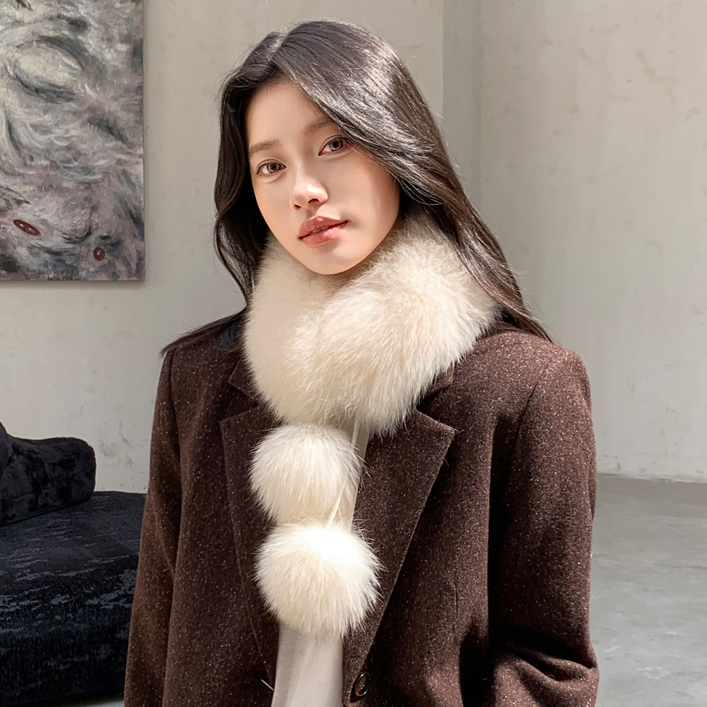 休闲百搭双面真毛毛皮草围巾狐狸毛配獭兔内里保暖气质大毛球围脖